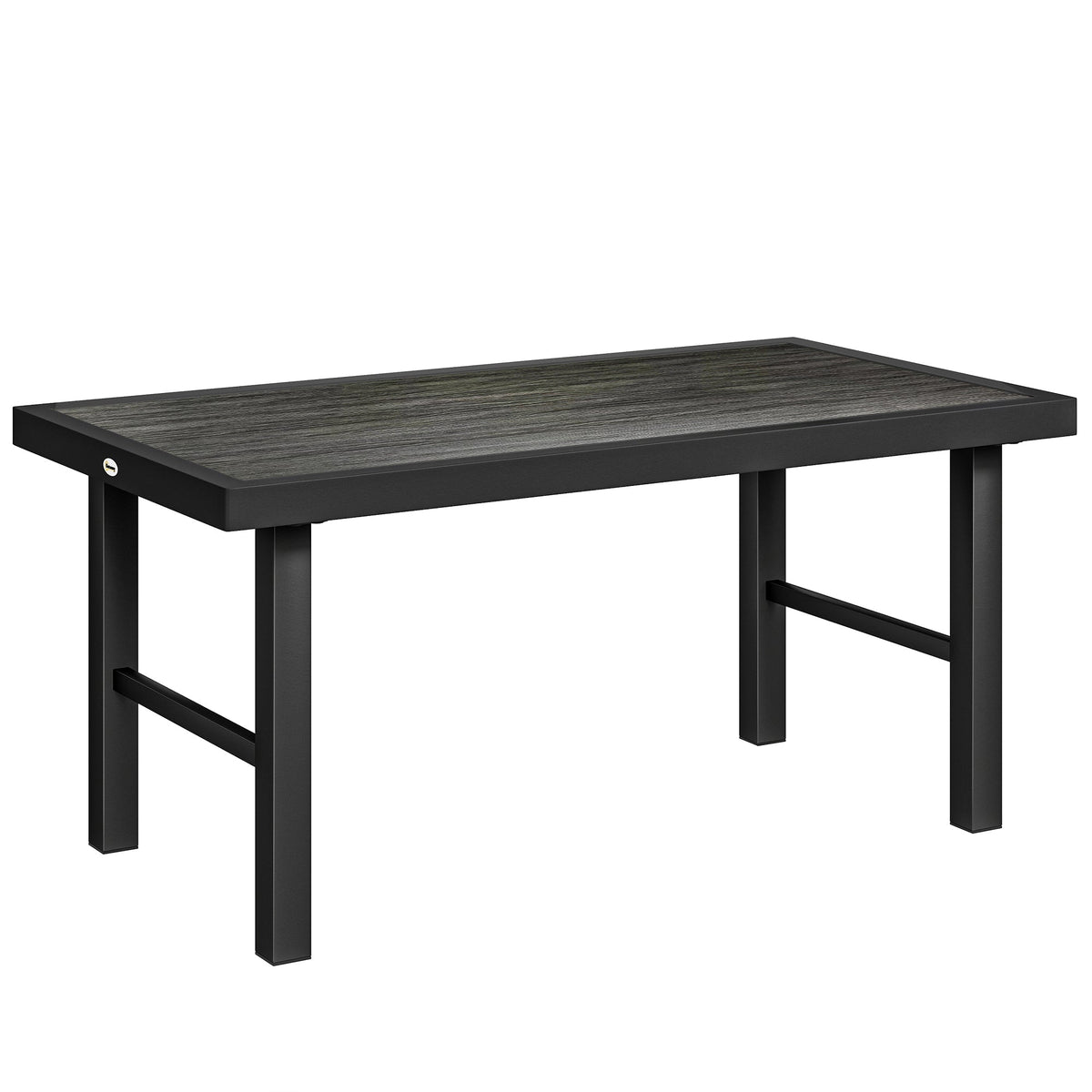 Outsunny Metal Garden Coffee Table, Outdoor Side Table with SPC Woodgrain Tabletop for Outside, 100 x 52 x 46cm, Dark Grey - Dark Grey