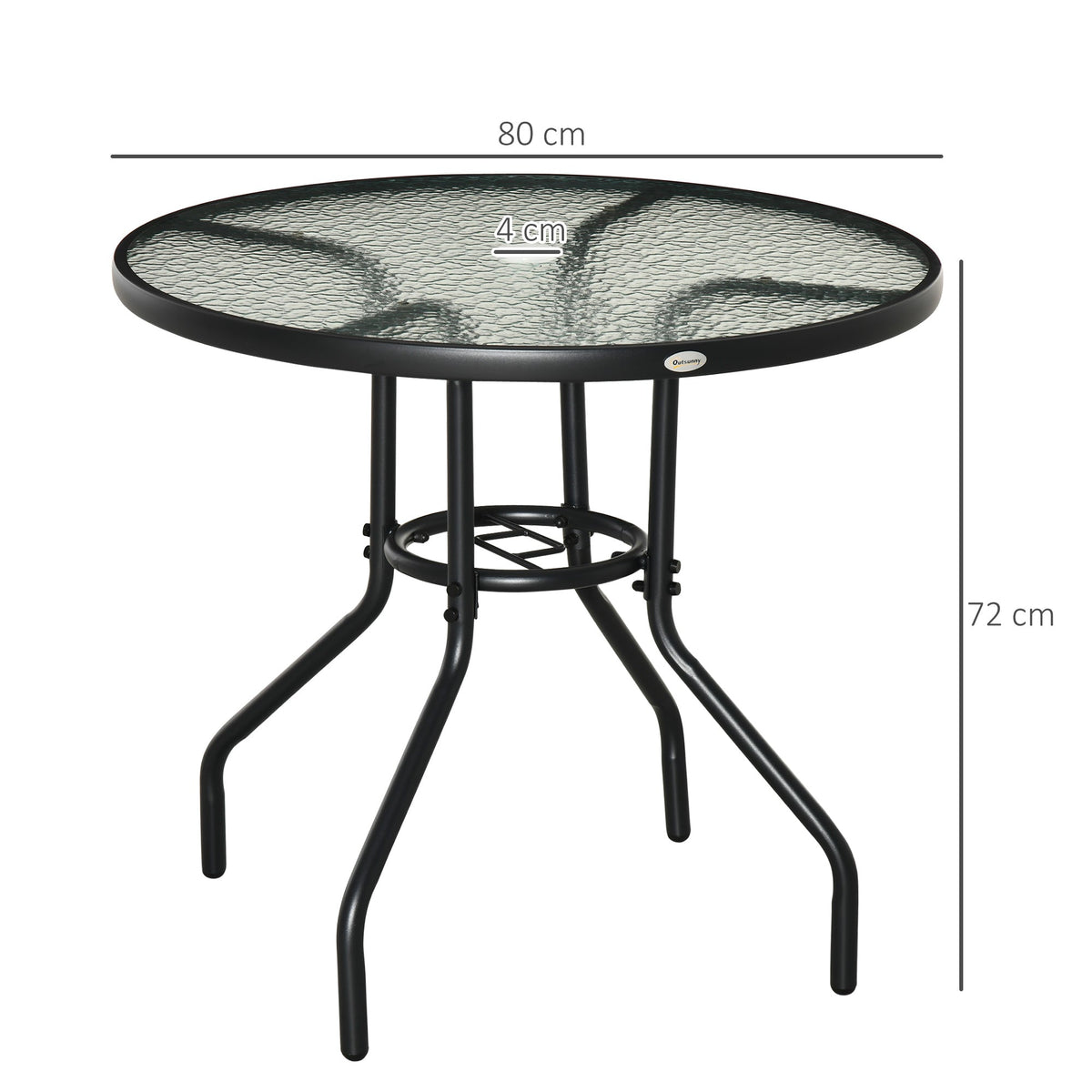 Outsunny Outdoor φ80cm Round Dining Table Tempered Glass Top Steel Frame Bistro Coffee End Side Table Garden w/ Parasol Hole - Black