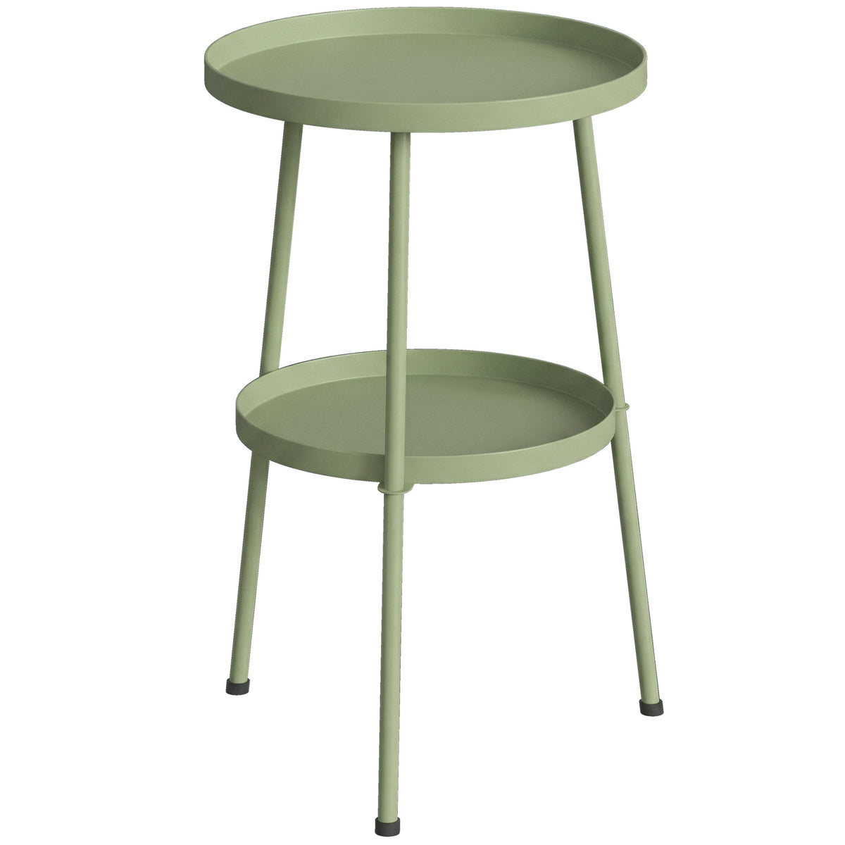 Outsunny Patio Side Table, 2-Tier Round Coffee End Table for Garden Balcony Living Room Bedroom, Light Green - Green
