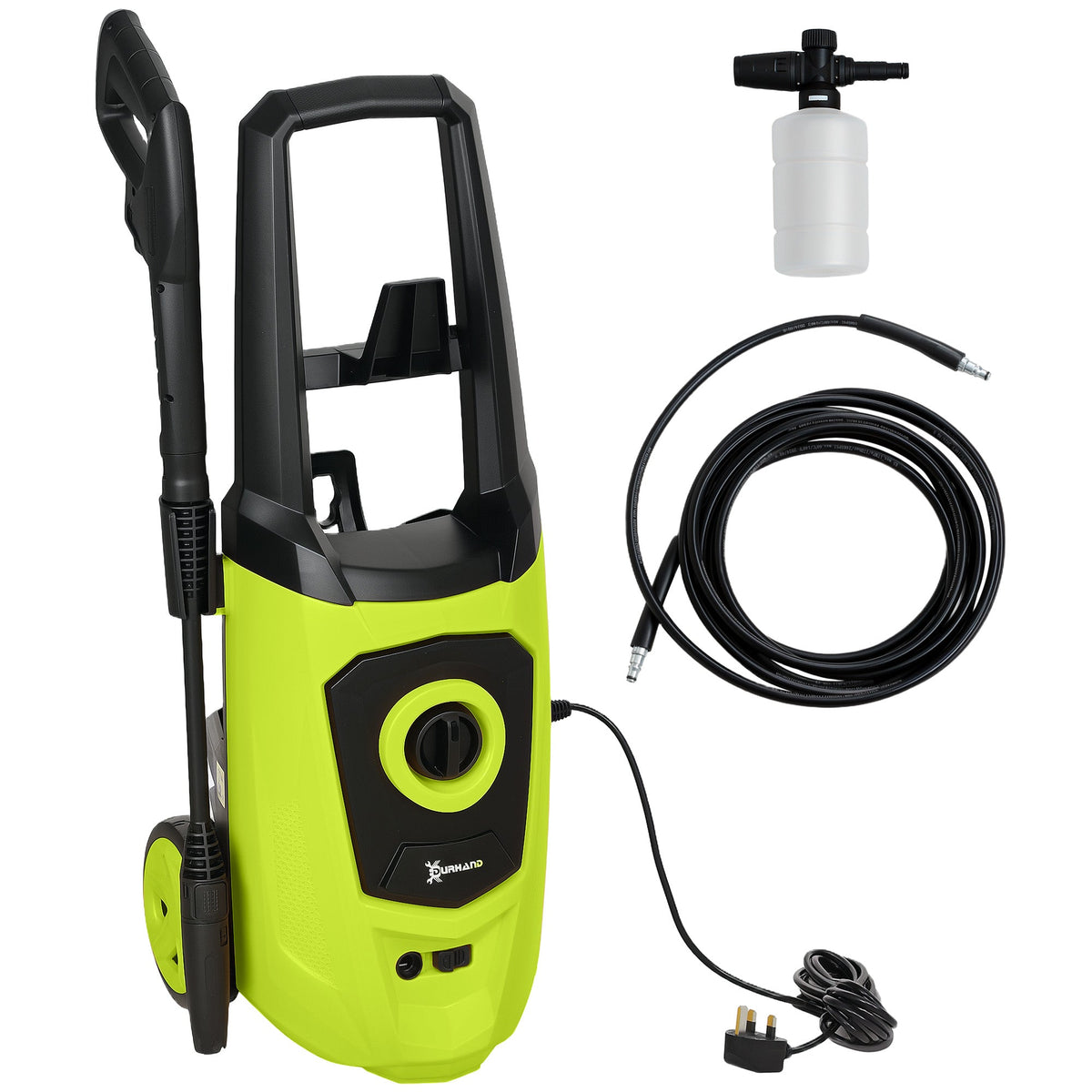DURHAND 1800W High Pressure Washer, 150 Bar Pressure, 510 L/h Flow, High-Performance Portable Power Washer Jet Wash Cleaner with 6M Hose, Snow Foam Bottle for Garden, Car, Furniture, Green - Green