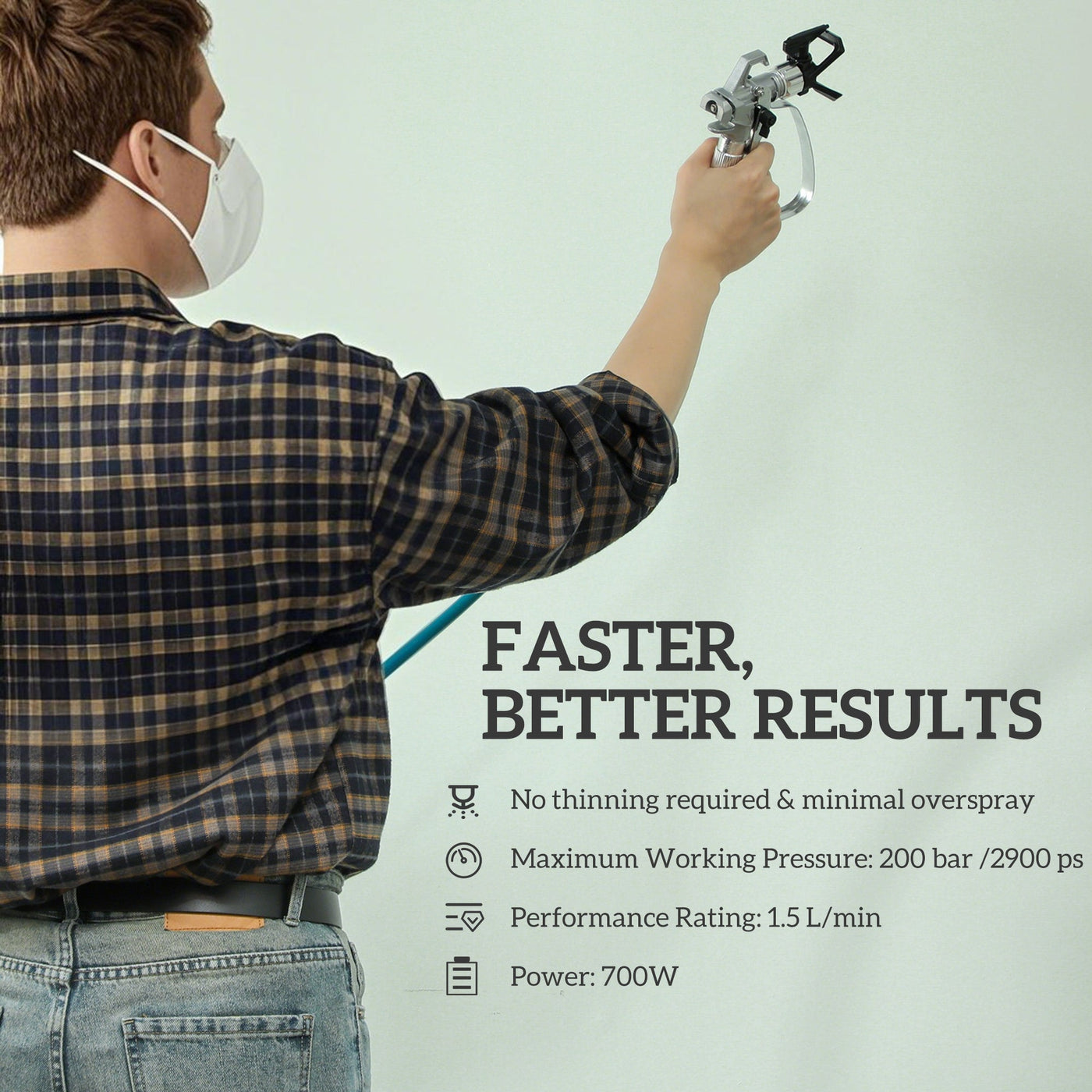 HOMCOM Airless Paint Sprayer, Thinning-Free, Electric Fence Paint Sprayer for Exterior and Interior DIY Painting Projects, Wall Spray Gun Machine, Household Use, 1.5L/min, 200 Bar, 7.5 m Hose - Blue