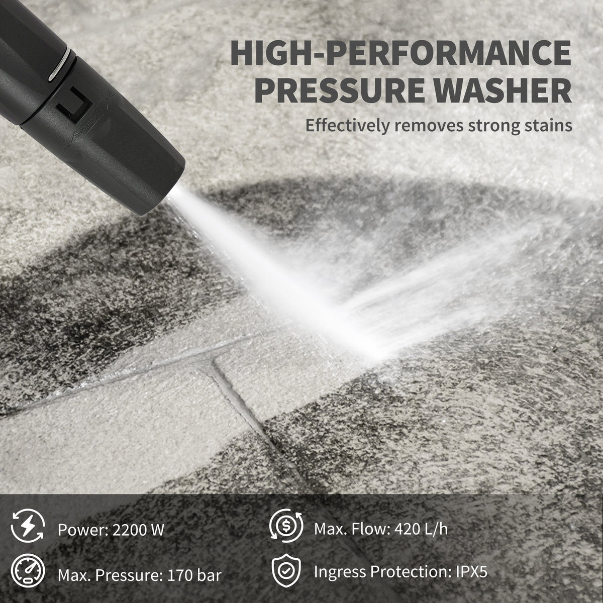 Easy home cleaning of stubborn tasks - this Outsunny portable pressure washer. 2200 W motor, with a 170 bar pressure...