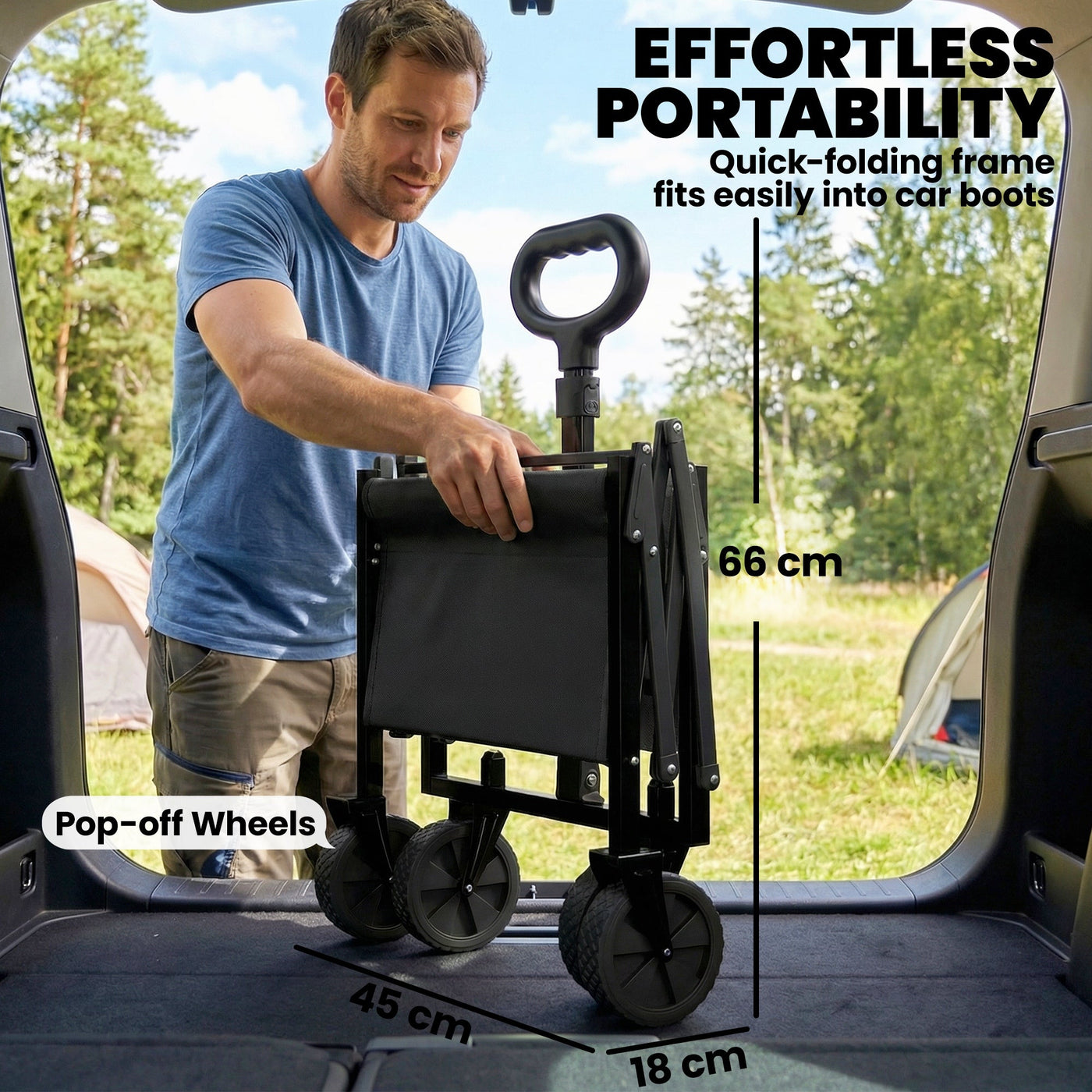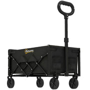 Outsunny 80L Foldable Festival Trolley on Wheels, Collapsible Wagon Cart with Drop-Down Tailgate, Adjustable Handle, Black - Black