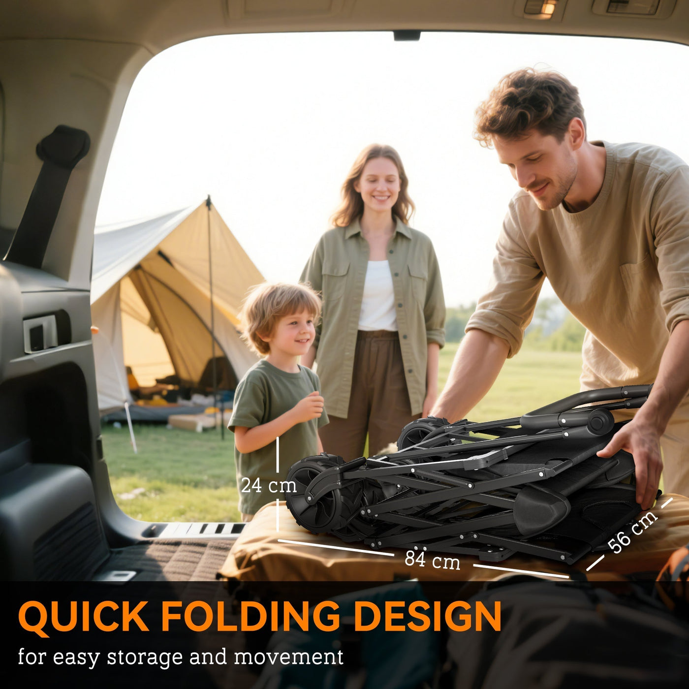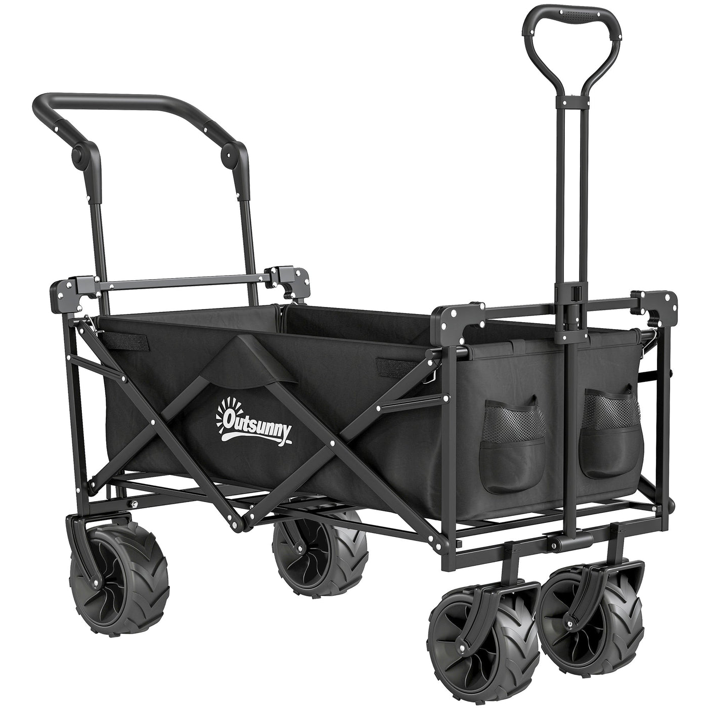 Outsunny Folding Trolley Cart Storage Wagon Beach Trailer 4 Wheels with Handle Overhead Canopy Cart Push Pull for Camping, Black - Black