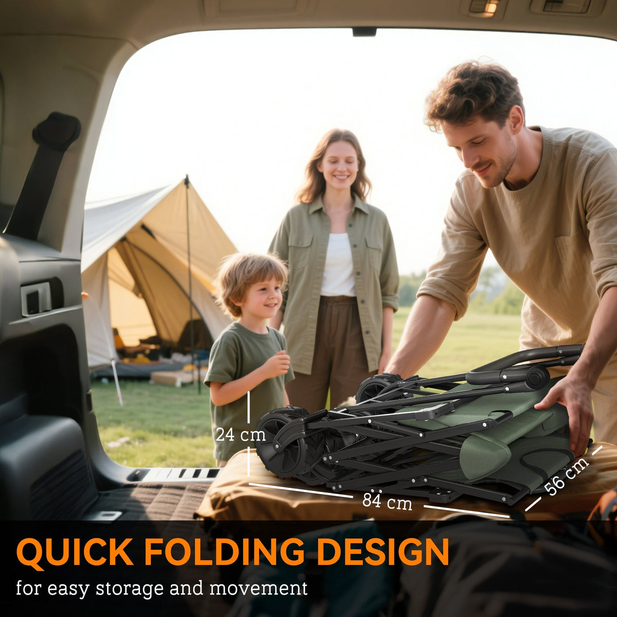 Outsunny Folding Trolley Cart Storage Wagon Beach Trailer 4 Wheels with Handle Overhead Canopy Cart Push Pull for Camping, Green - Green