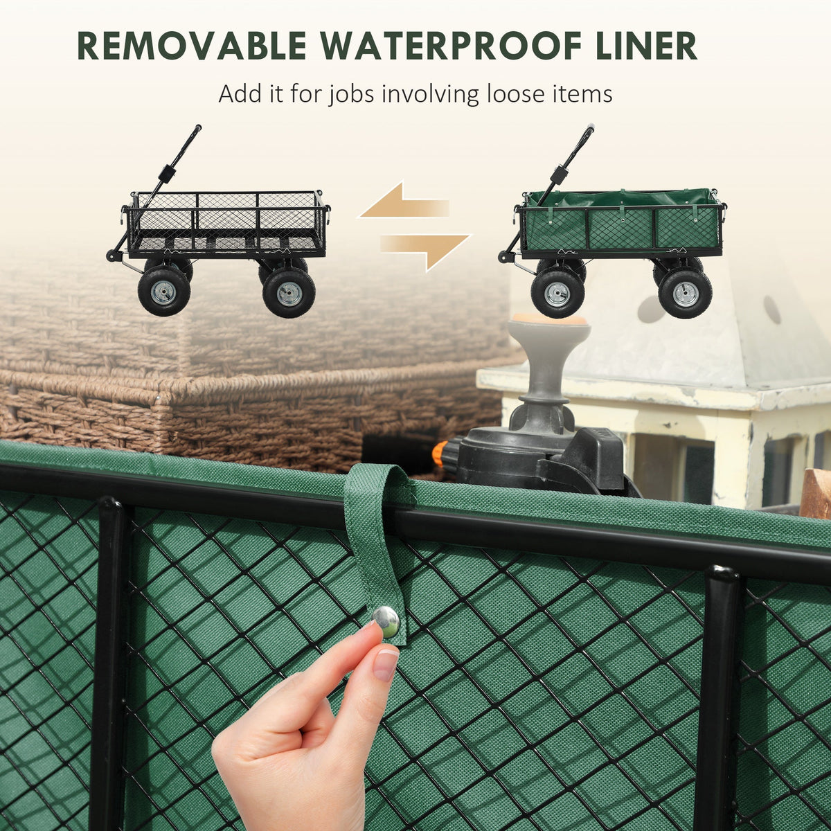 Outsunny 114L Steel Frame Garden Cart Trolley - Green - Green