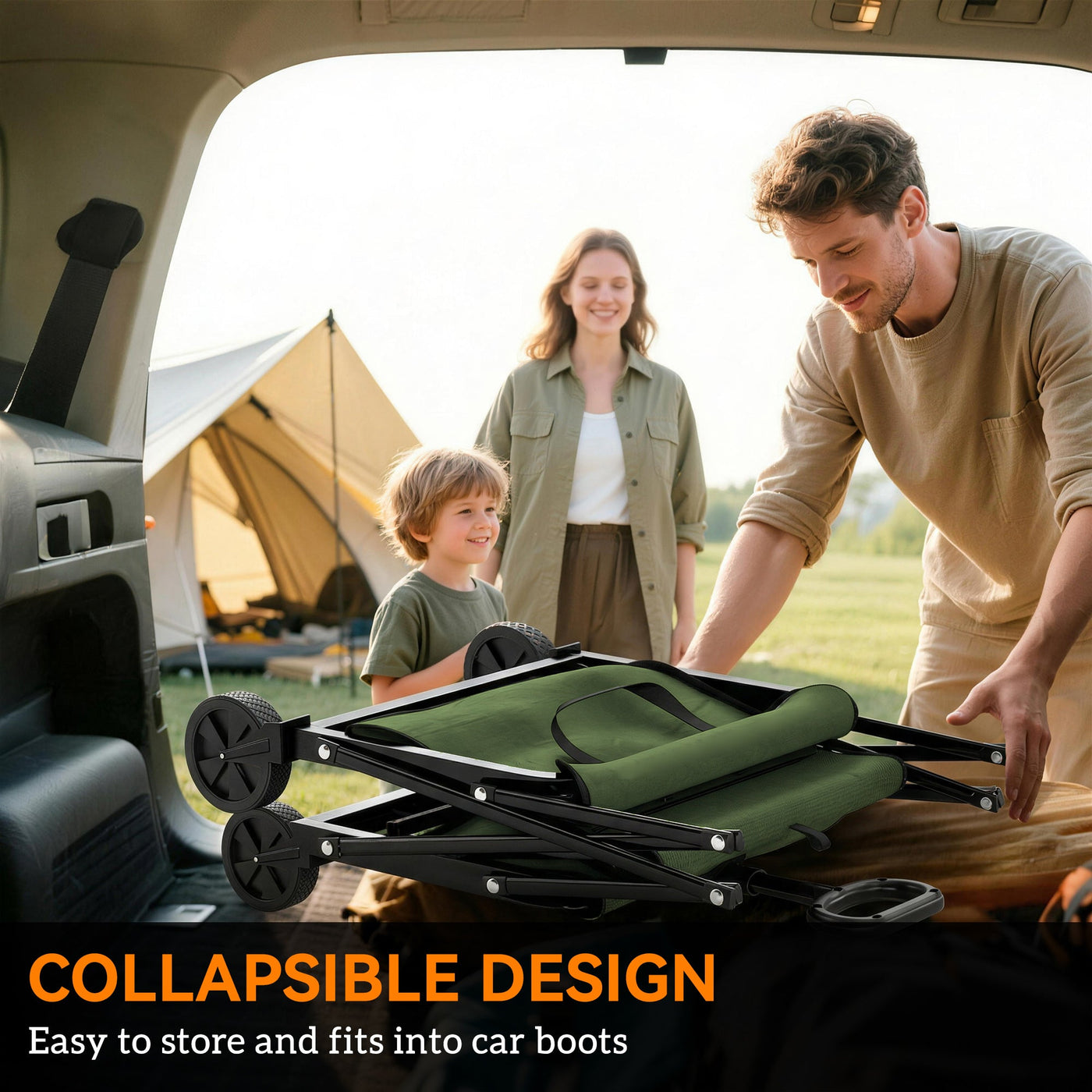 Outsunny 81L Festival Trolley on Wheels, Compact Garden Folding Trolley Cart with Adjustable Handle 80L Green - Green