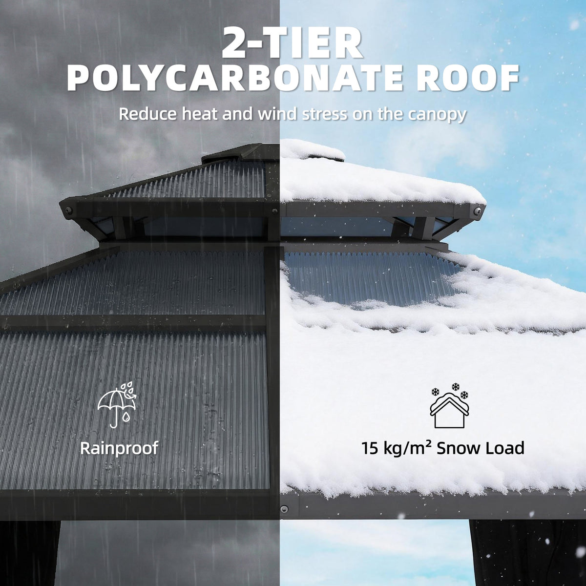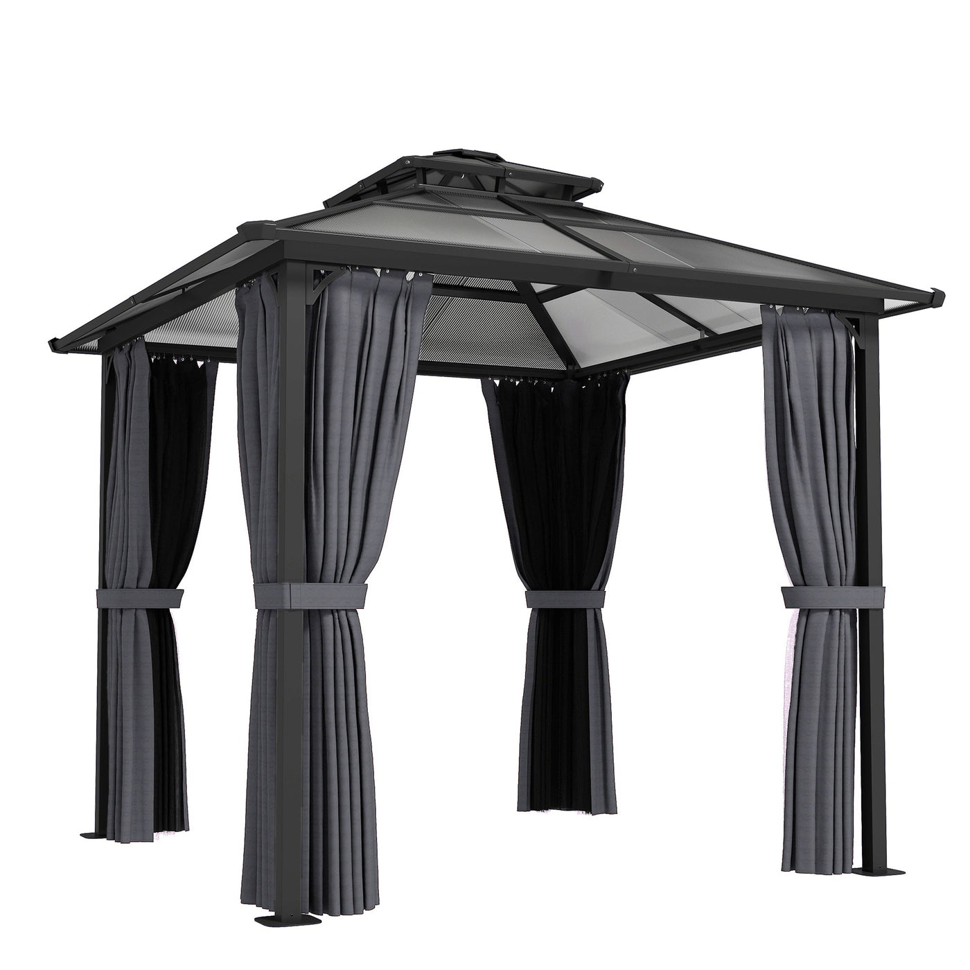 Outsunny 2.5 x 2.5 m Hardtop Gazebo Canopy with Double PC Roof, Drainage Gutters, Garden Gazebo Permanent Pavilion, Dark Grey - Dark Grey