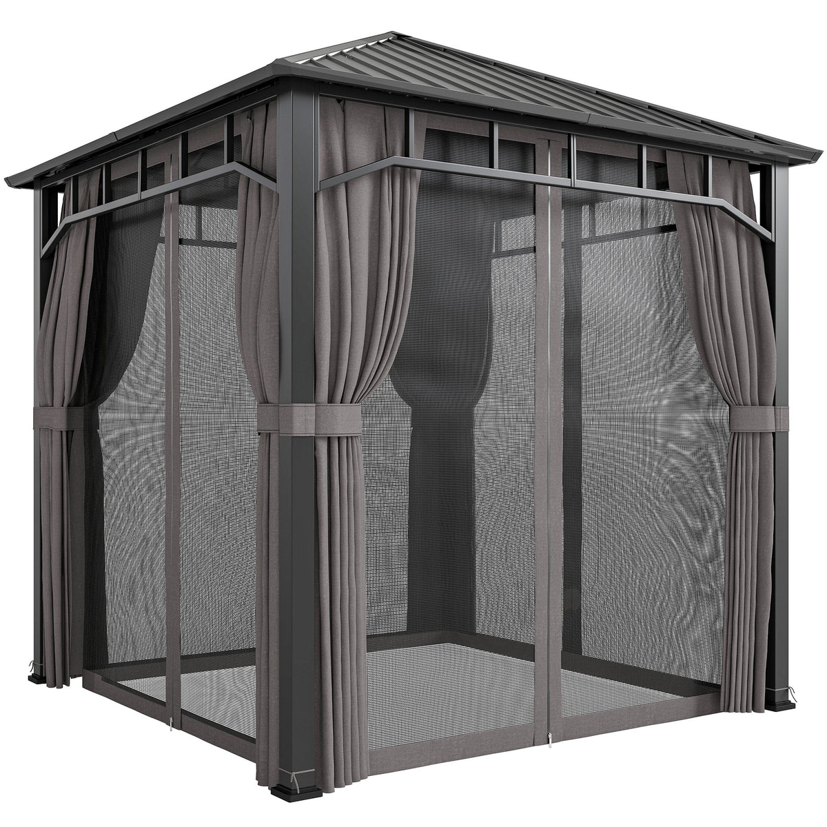 Outsunny 2.5 x 2.5 m Hardtop Gazebo with Galvanised Steel Roof, Waterproof Permanent Pavilion Garden Gazebo with Netting and Curtains for Patio, Deck, Dark Grey - Dark Grey