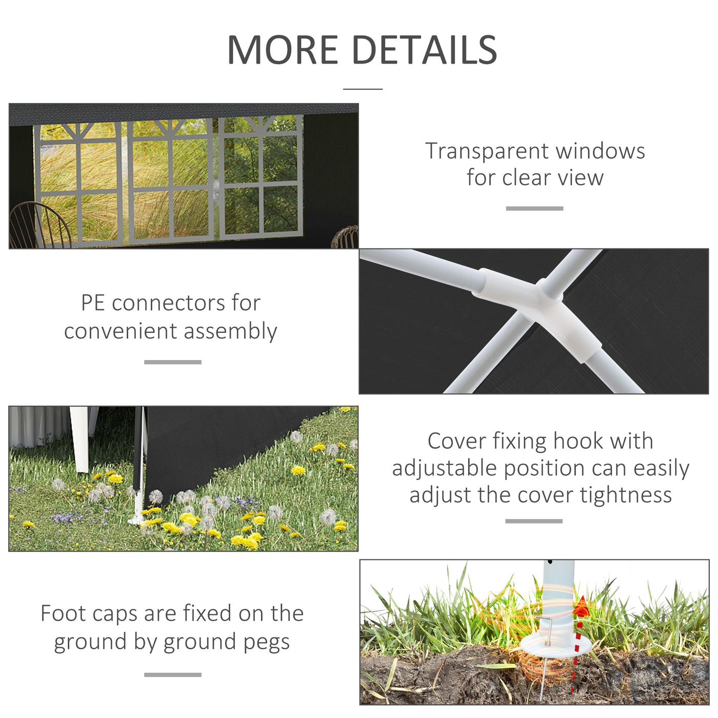Outsunny 2.95 x 5.83 m Semi-Open Gazebo - Dark Grey - Dark Grey