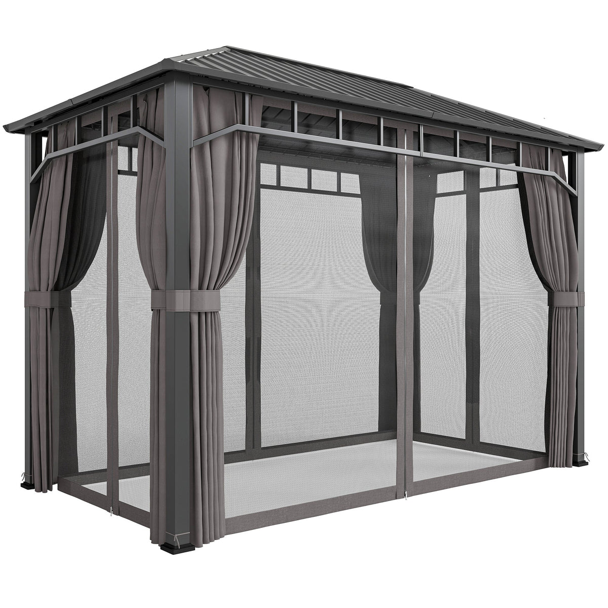 Outsunny 2 x 3.5 m Hardtop Gazebo with Galvanised Steel Roof, Waterproof Permanent Pavilion Garden Gazebo with Netting and Curtains for Patio, Deck, Dark Grey - Dark Grey