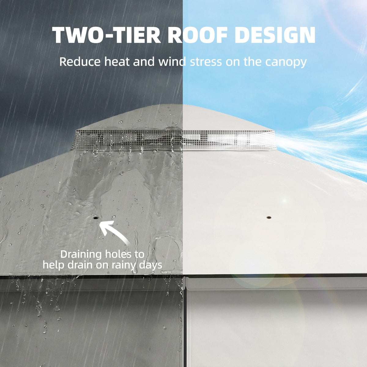 Outsunny 3 x 3.6 m Outdoor Garden Gazebo with Netting and Curtains, Double Roof Patio Gazebo Permanent Pavilion, Light Grey - Light Grey