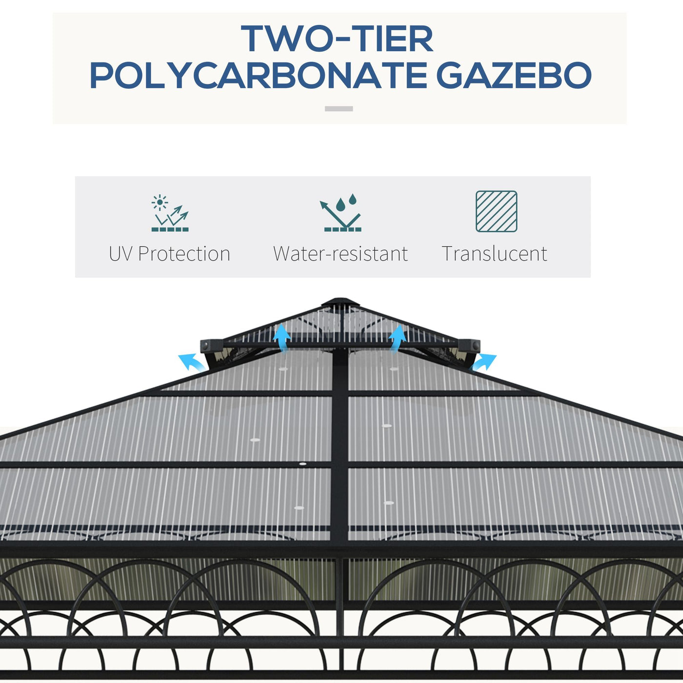 Outsunny 3 x 3 (m) Outdoor Polycarbonate Gazebo, Double Roof Hard Top Gazebo with Galvanised Steel Frame, Nettings & Curtains for Garden, Lawn, Patio and Deck, Khaki - Black, Dark Grey, Khaki