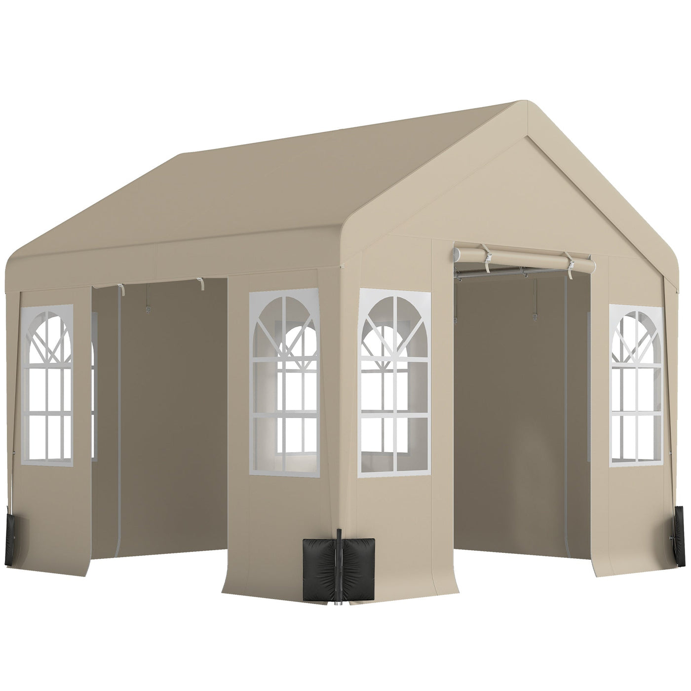Outsunny 3 x 3 m Party Tent, Outdoor Canopy Tent Shelter with Removable Sidewalls, 4 Zipped Doors, for Parties, Wedding, Beige - Beige
