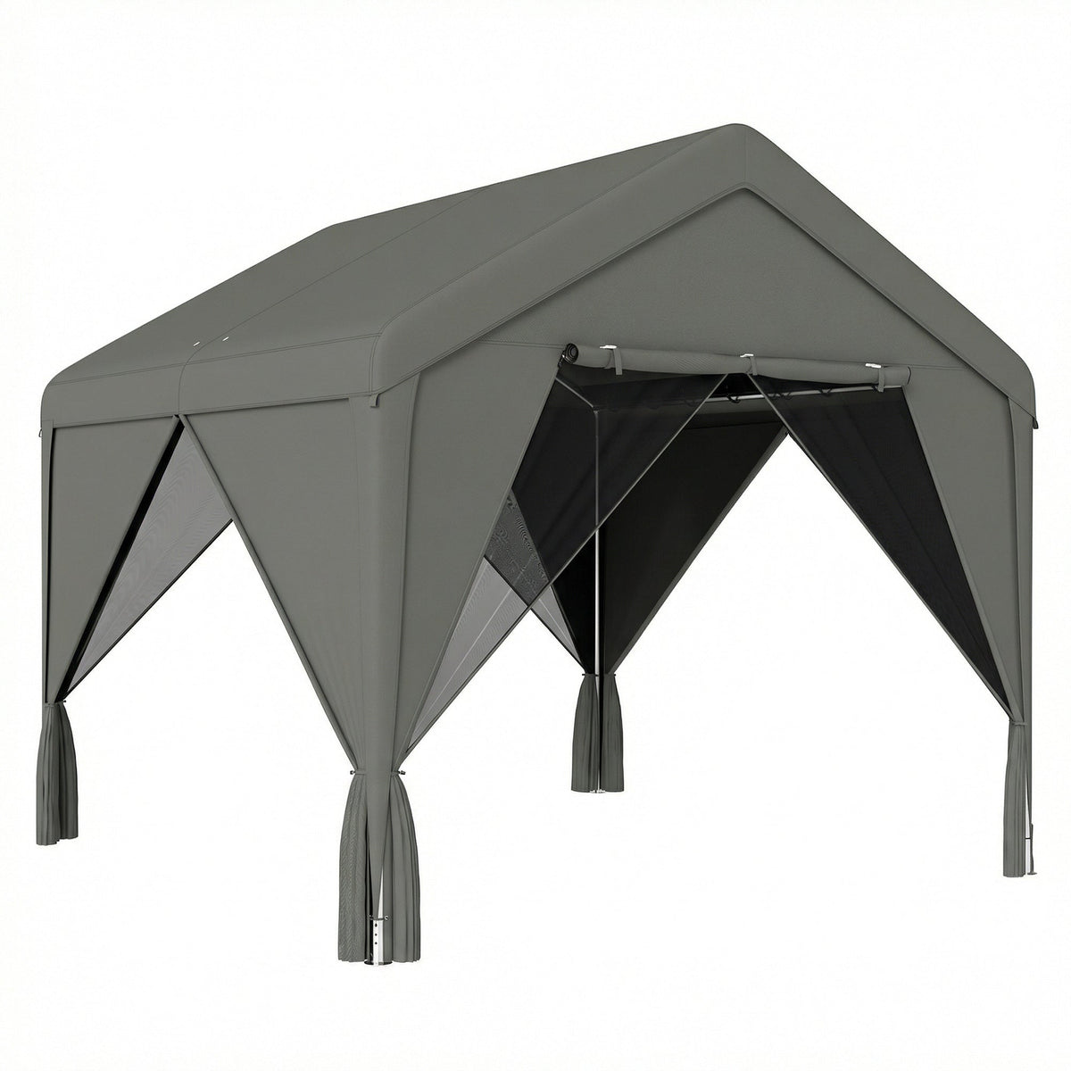 Outsunny 3 x 3 m Patio Gazebo with Netting & Curtains, Outdoor Canopy Shelter with Galvanised Steel Frame, Dark Grey - Dark Grey