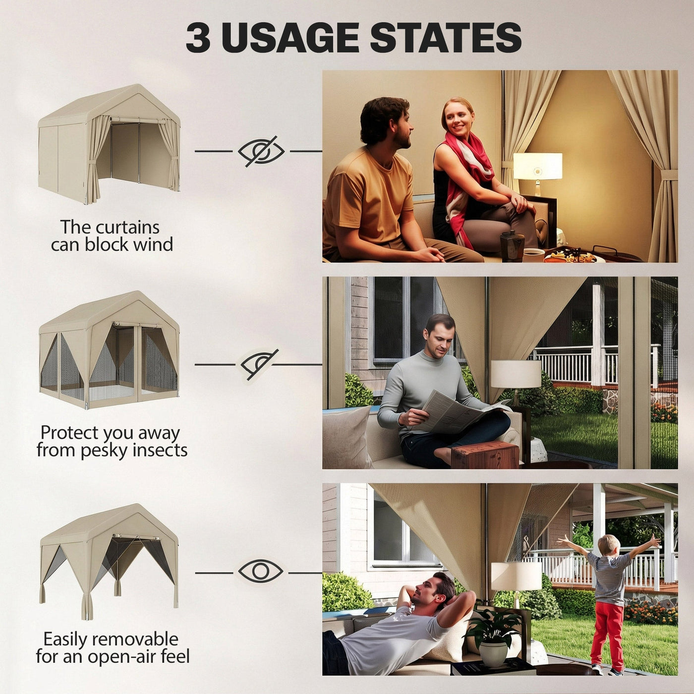Outsunny 3 x 3 m Patio Gazebo with Netting & Curtains, Outdoor Canopy Shelter with Galvanised Steel Frame, Khaki - Khaki