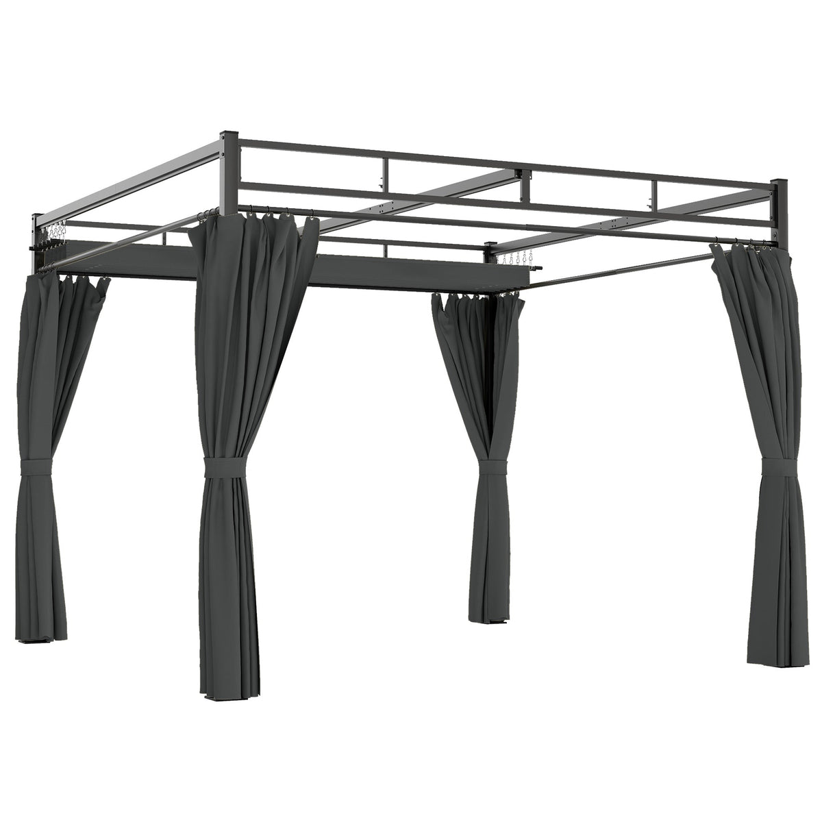 Outsunny 3 x 3 m Pergola with Retractable Roof Canopy and Curtains, UPF30+ Metal Frame Garden Pergola Gazebo Sun Shade, Dark Grey - Dark Grey