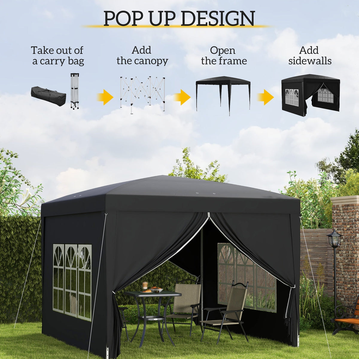 Outsunny 3 x 3(m) Pop Up Gazebo, Water and UV Resistant Party Tent Camping Canopy Marquee with Carry Bag, Black