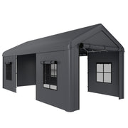 Outsunny 3 x 6 m Heavy Duty Carport, Portable Garage Car Canopy Tent with Galvanised Frame, Doors, Windows, Dark Grey - Dark Grey