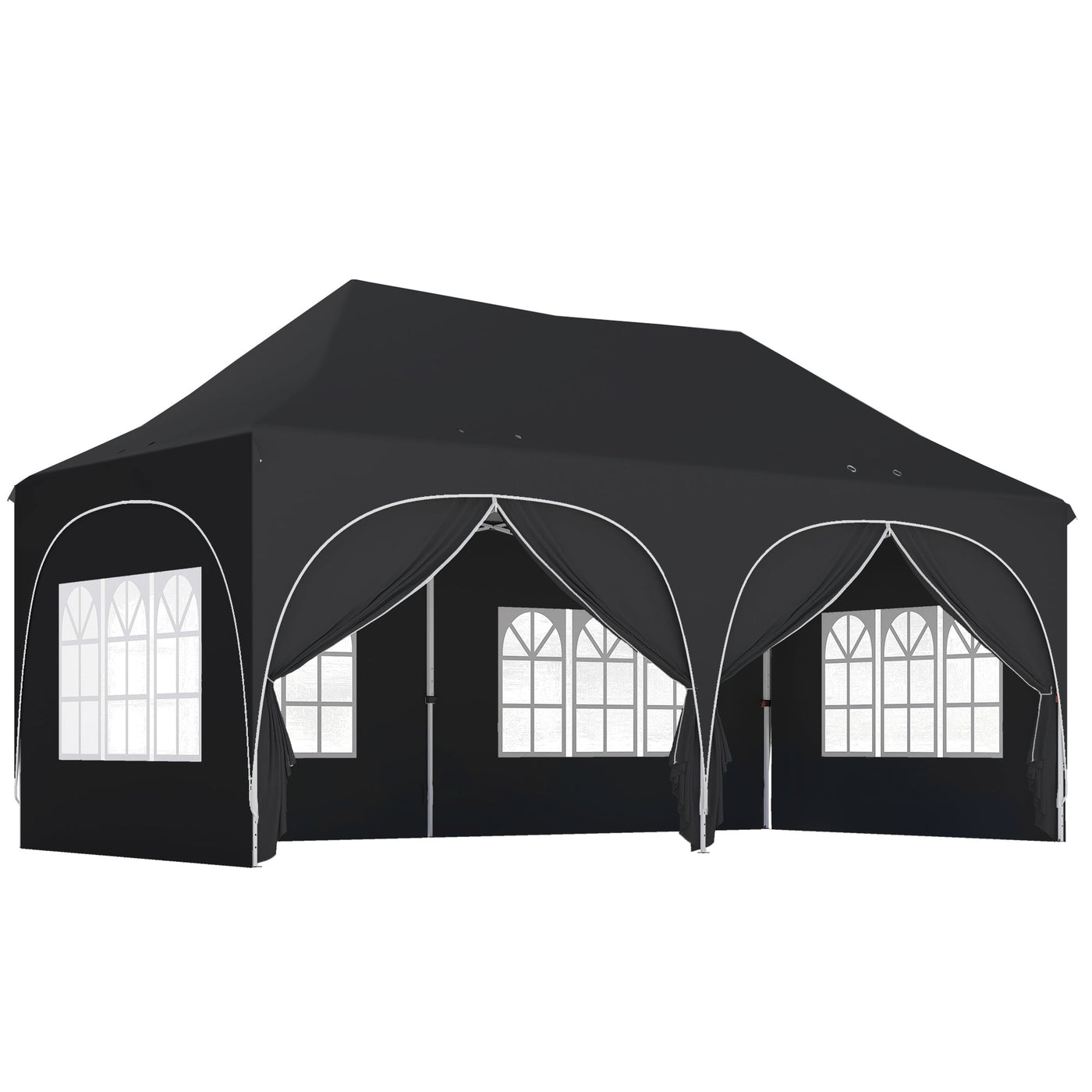 Outsunny 3 x 6m Pop Up Gazebo Shelter with Sides, 6 Sandbags, Peak Top Garden Party Tent Marquee with Carry Bag, Black - Black