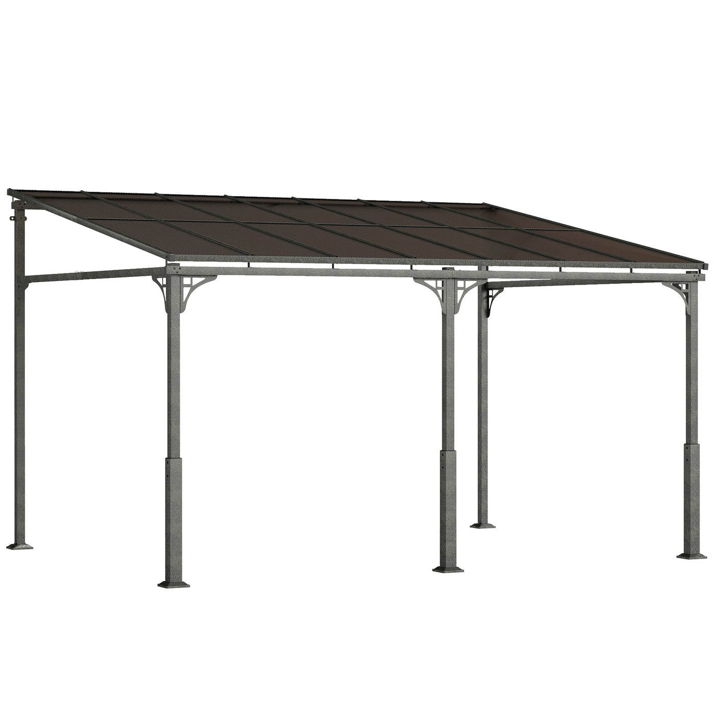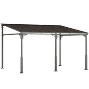 Outsunny 4 x 3 m Metal Lean-to Pergola, Wall-Mounted Garden Pergola with Polycarbonate Roof and Metal-Aluminium Frame, Heavy Duty Hardtop Gazebo for Outdoor Patios, BBQ, Brown - Brown