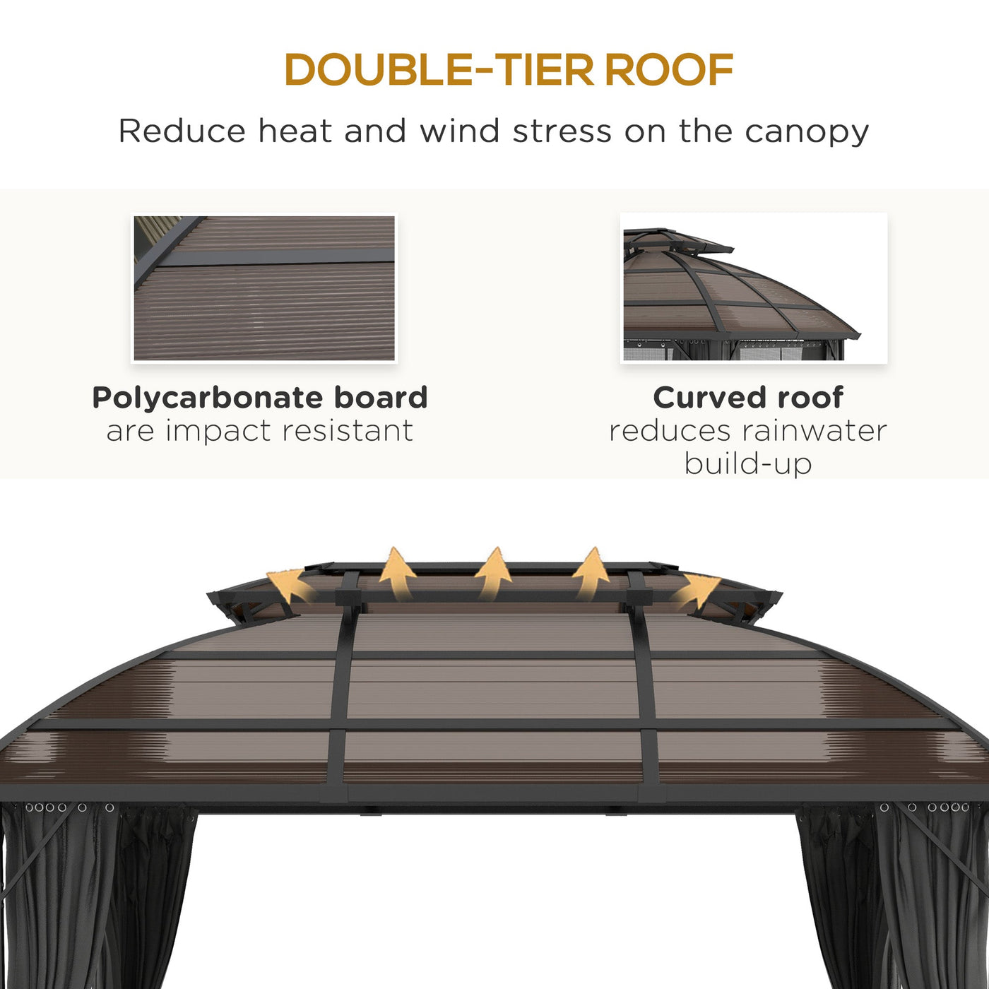 Outsunny 4 x 3m Aluminium Frame Hard Gazebo, with Accessories - Brown - Brown