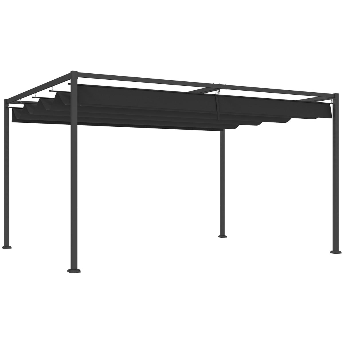 Outsunny 4 x 3m Metal Pergola, with Retractable Canopy Roof - Black - Black
