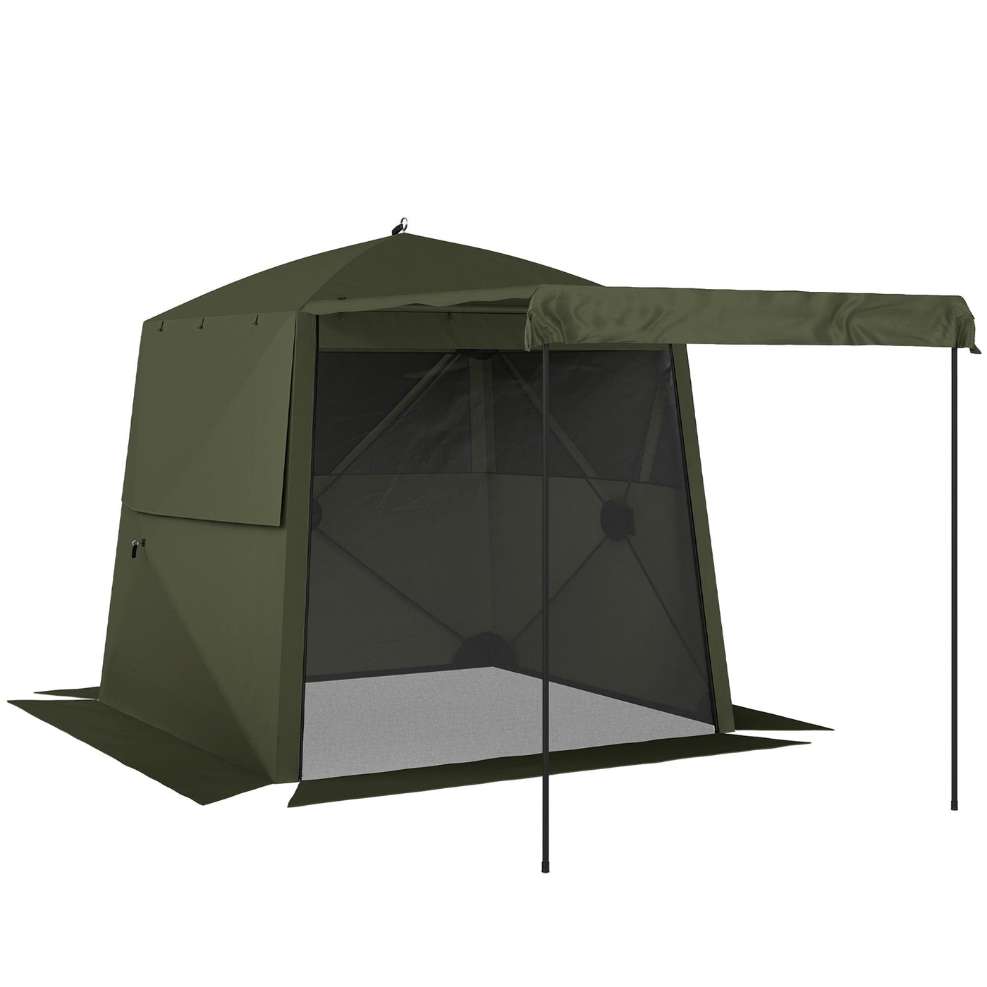 Outsunny Pop Up Gazebo Waterproof Instant Shelter with Awning Mesh Windows for Camping Patio 2 x 2 m, Army Green - Green