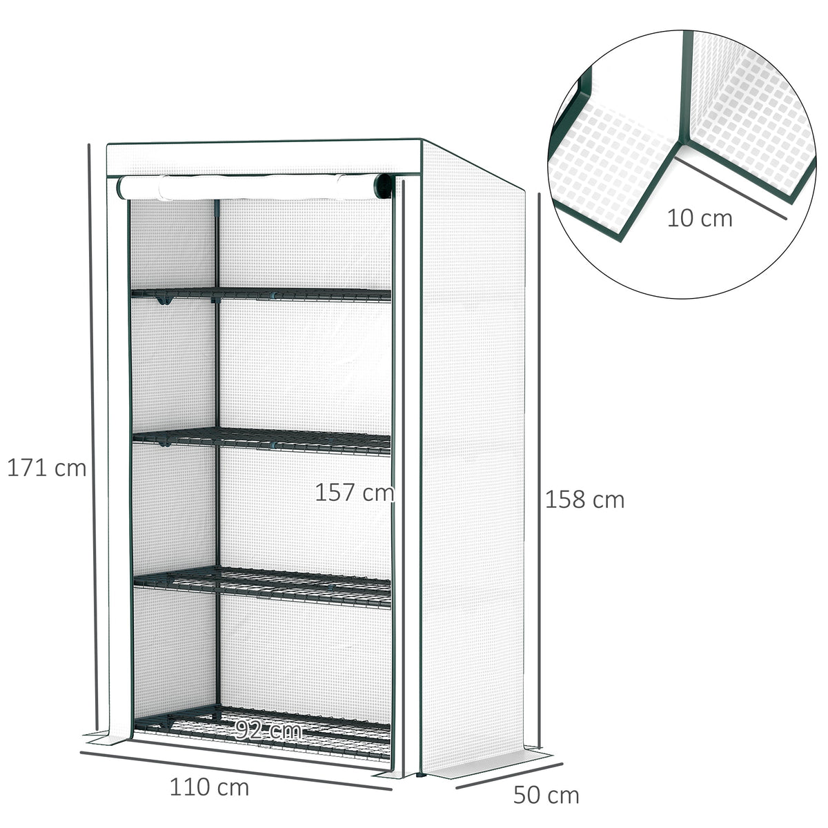 Outsunny Four-Tier Mini Greenhouse - Green/White - Green