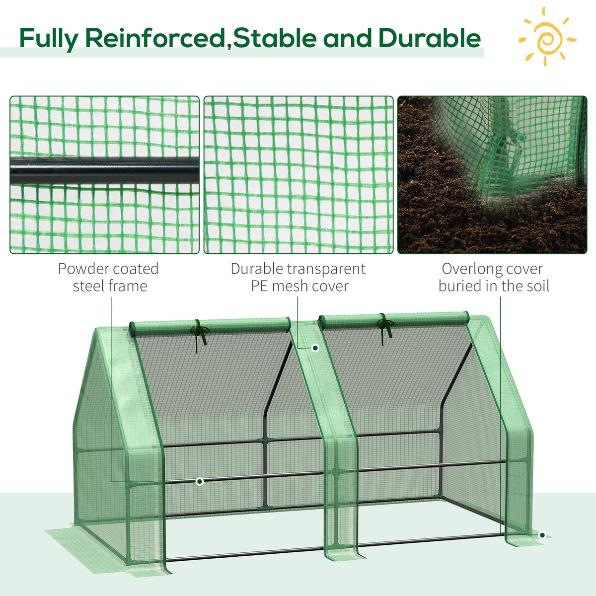Outsunny Mini Small Greenhouse with Steel Frame & PE Cover & Zippered Window Poly tunnel Steeple for Plants Vegetables, 180 x 90 x 90 cm, Green - Green