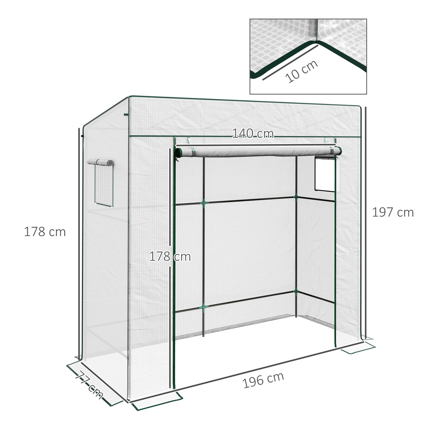 Outsunny PE Cover Walk-in Outdoor Greenhouse, White - White