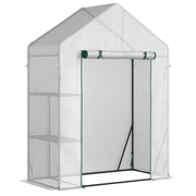 Outsunny Walk In Greenhouse with 2 Tier Shelf, Portable Gardening Plant Grow House Tomato Greenhouse with Roll up Zip Panel Door, Reinforced PE Cover, 143 x 73 x 195cm, Green - White