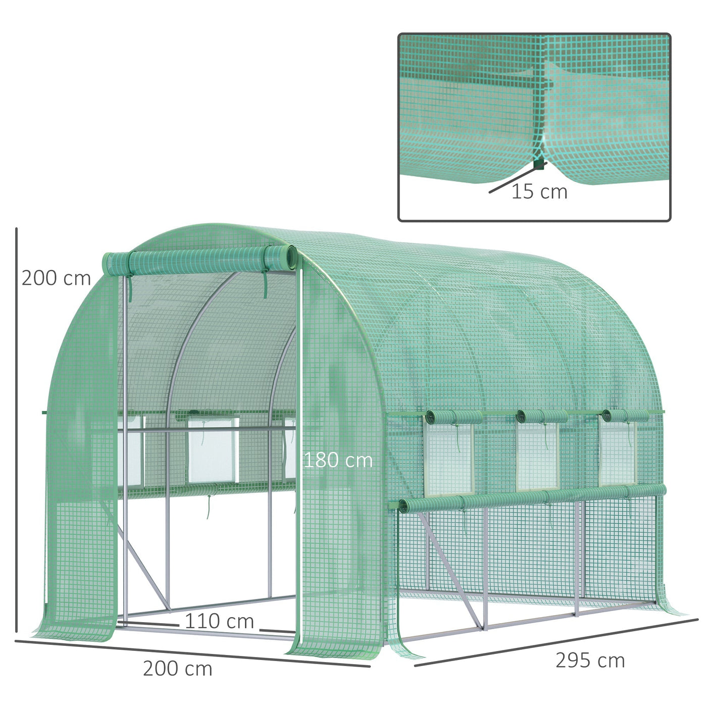 Outsunny Walk-in Polytunnel Greenhouse Green House with Roll-up Sidewalls, UV-resistant PE Cover, 3 x 2 x 2m, Green - Green