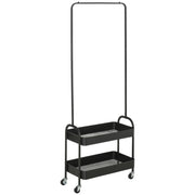 HOMCOM Metal Clothes Rack with Shoe Storage, Clothing Rail on Wheels, Freestanding Hall Tree, Coat Stand with 2 Storage Shelf, Black - Black