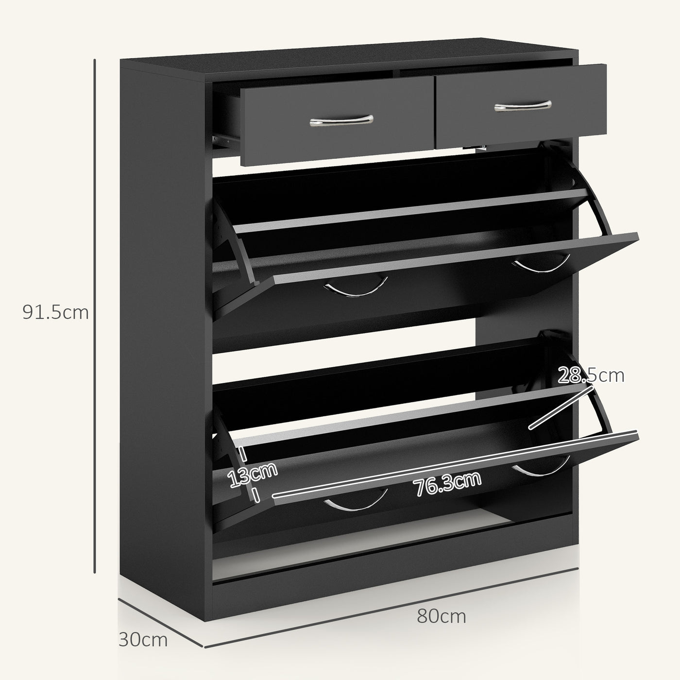 HOMCOM Narrow Shoe Storage with 2 Flip Drawers and Adjustable Shelves Shoe Cabinet Organizer for 12 Pairs of Shoes, Black - Black