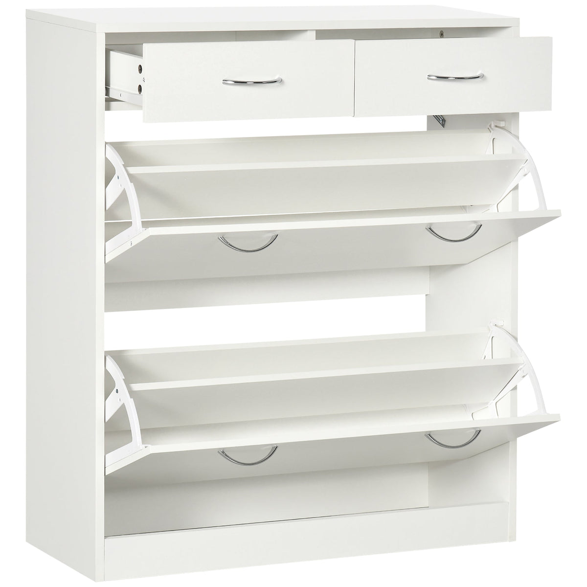 HOMCOM Narrow Shoe Storage with 2 Flip Drawers and Adjustable Shelves Shoe Cabinet Organizer for 12 Pairs of Shoes, White - White