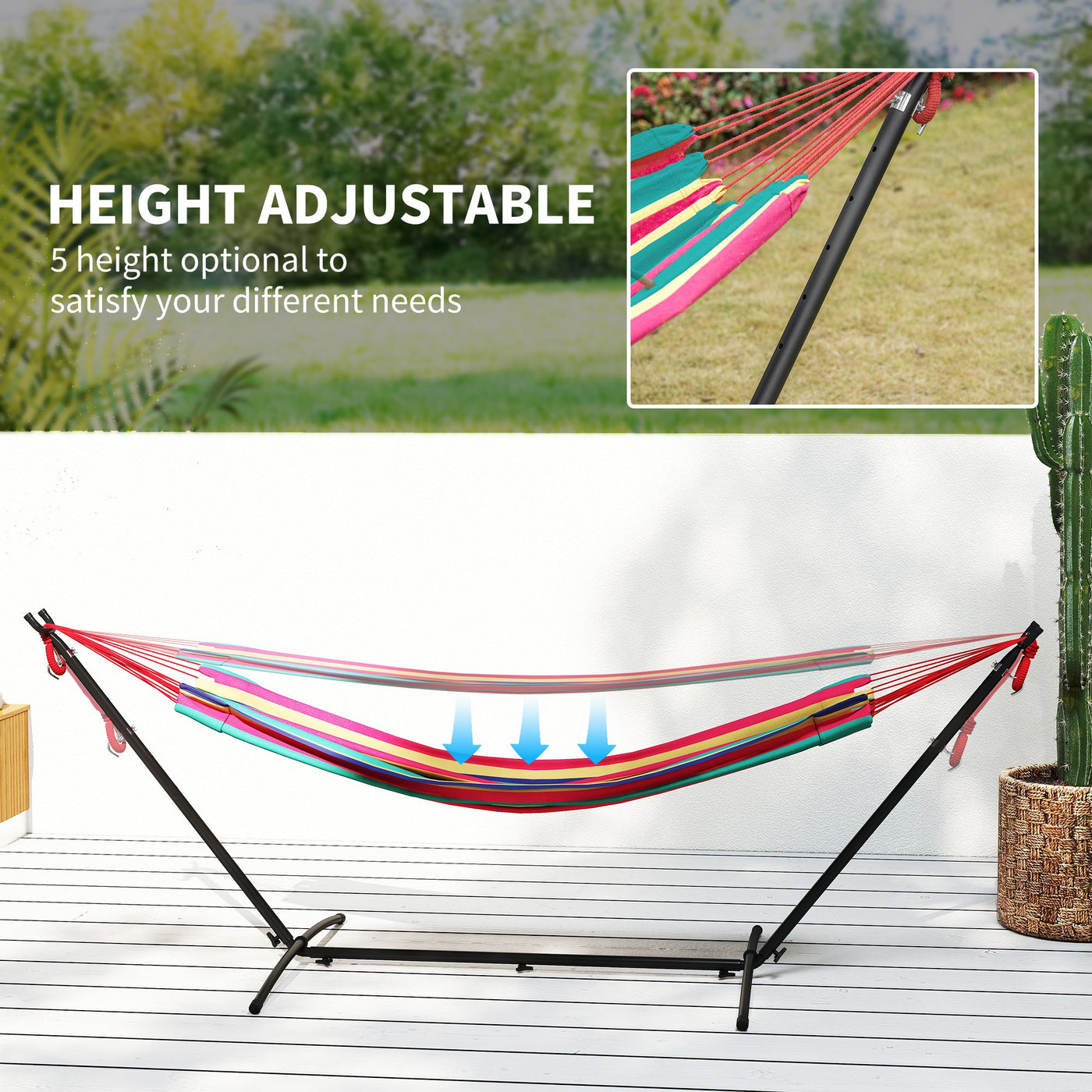 Outsunny 298 x 117cm Hammock with Stand Camping Hammock with Portable Carrying Bag, Adjustable Height, 120kg Load Capacity, Multicolour - Red Stripe