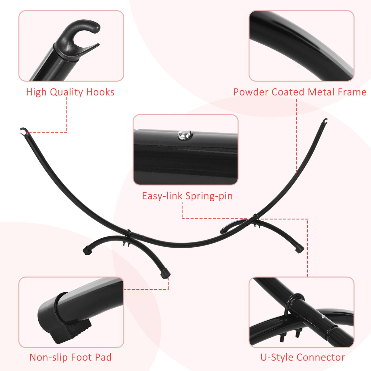 Outsunny 3(m) Universal Hammock Stand Metal Frame Garden Camping Picnic Outdoor Patio Replacement – Stand Only - Black