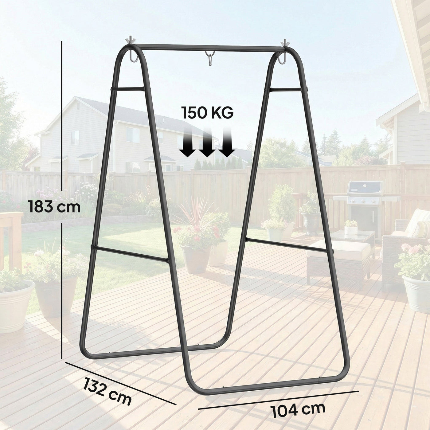 Outsunny Hammock Chair Stand Only 150KG Load Capacity for Indoor Outdoor, Black - Black