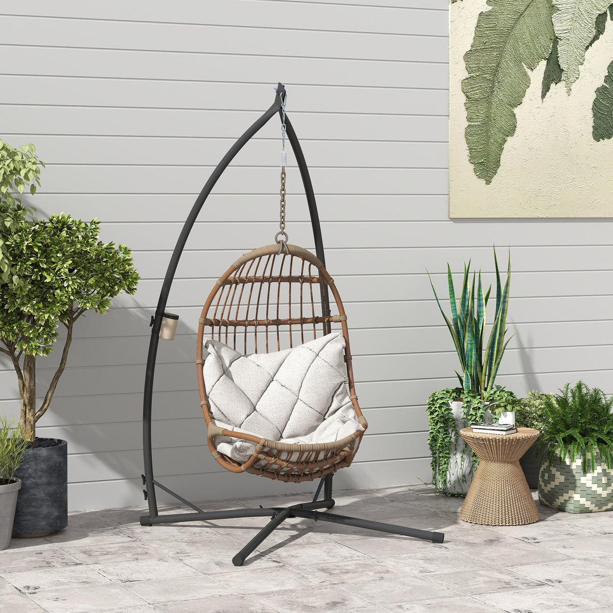 Outsunny Hammock Chair Stand Only, Hanging Chair Stand with X-Shape Base, Heavy Duty Steel Single Hammock Egg Swing Frame for Indoor Outdoor, 150 KG Load Capacity Black - Black