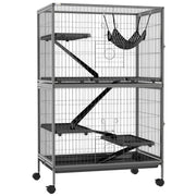 PawHut Small Animal Cage for Chinchilla Ferret Kitten on Wheels with Hammock Removable Tray, Grey - Grey