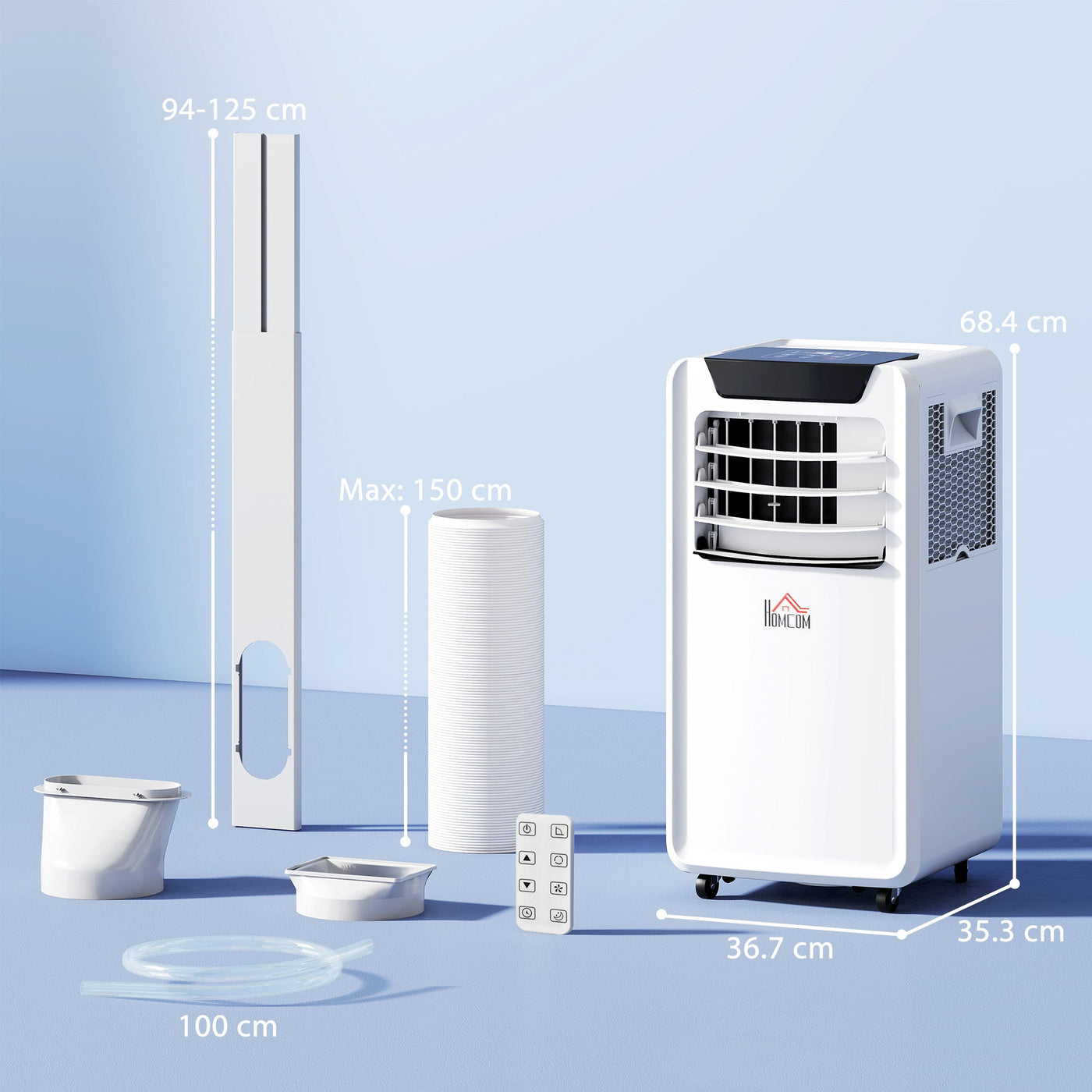 HOMCOM 10000 BTU Air Conditioning Unit, 3-in-1 Portable Air Conditioner, Dehumidifier, Cooling Fan with Remote Control, LED Display, 2 Speeds, 24H Timer, Window Venting Kit, 30m² - White