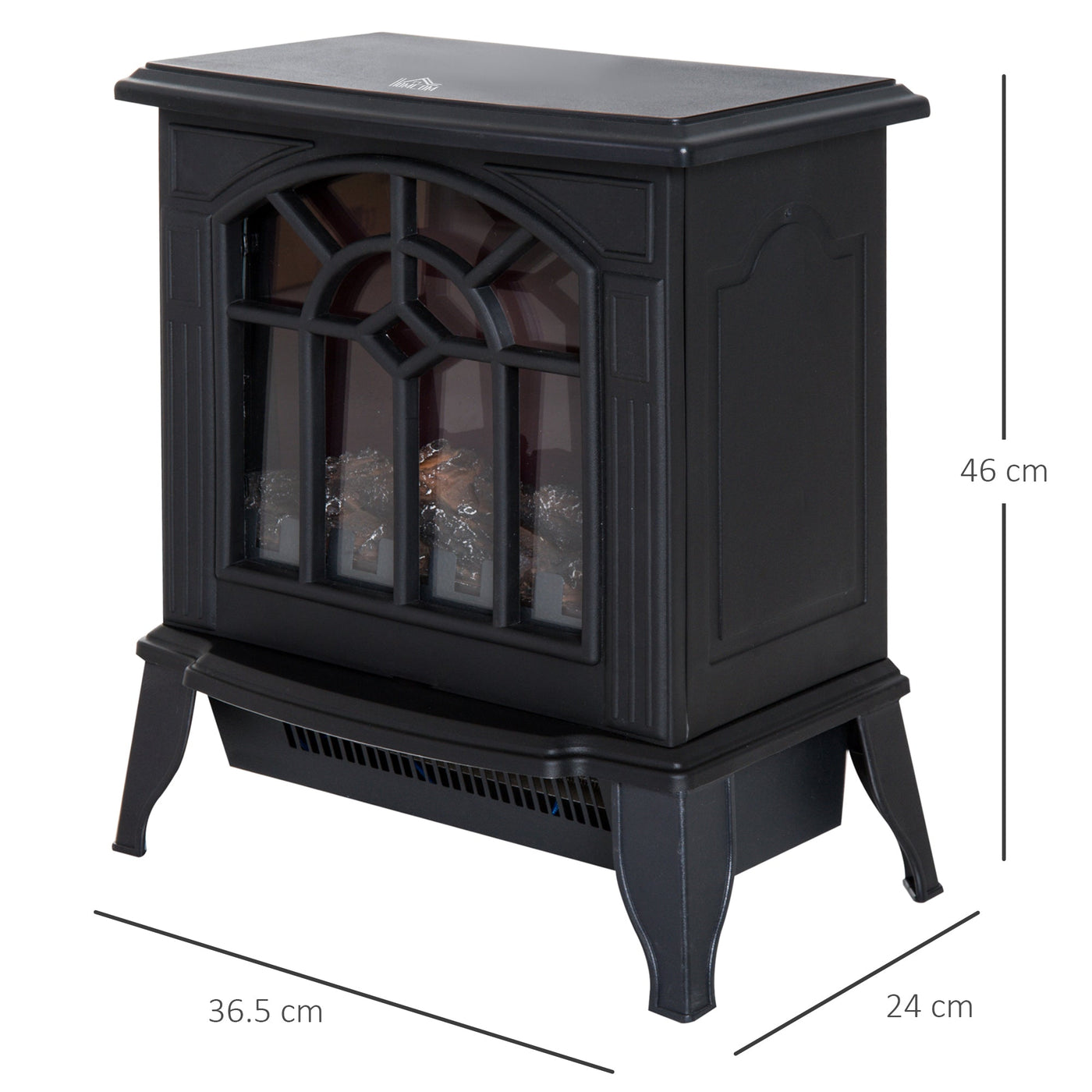 HOMCOM 1000W/2000W Freestanding Electrical Fireplace Indoor Heater Stove Log Wood LED Burning Effect Flame with Thermostat Control Black - Black