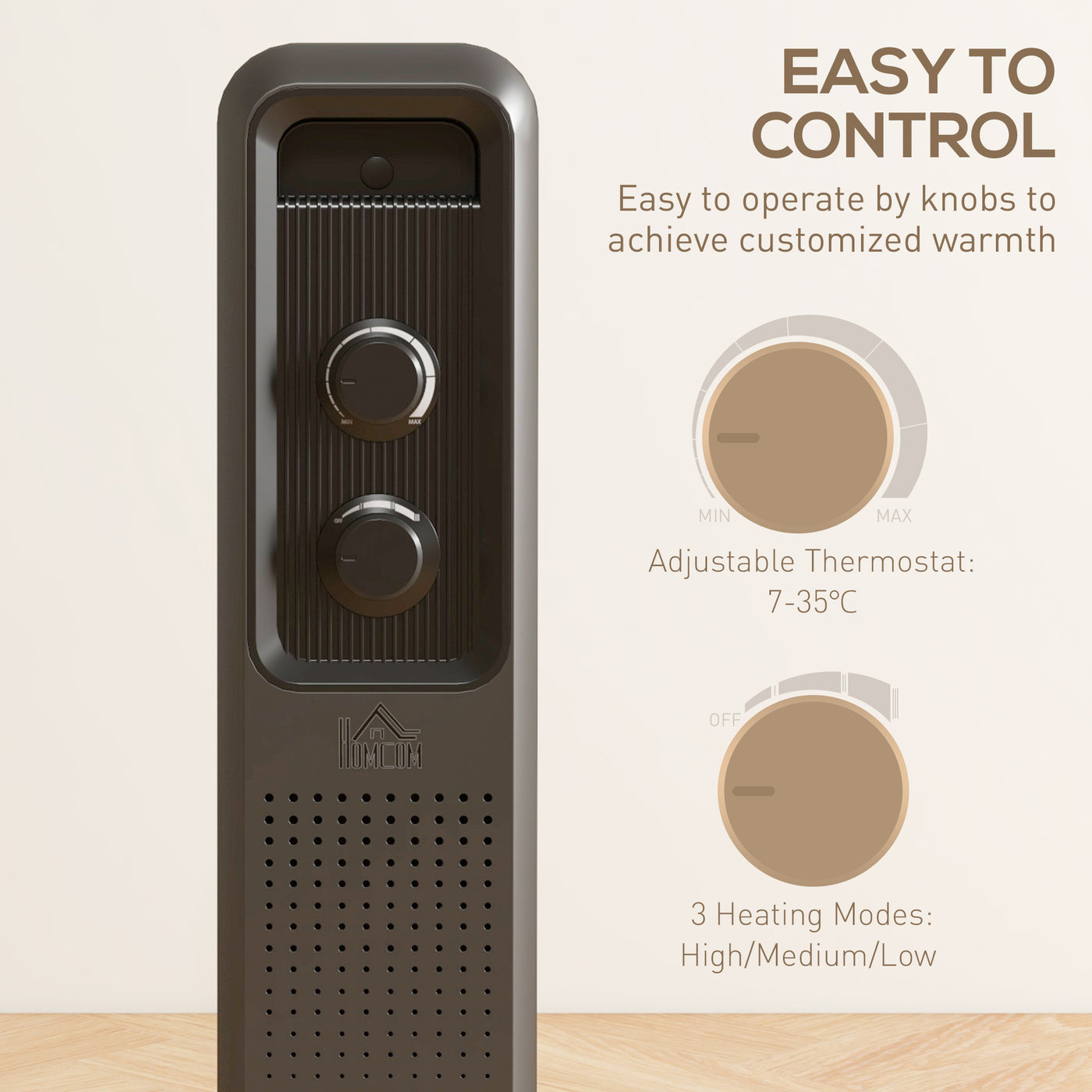 HOMCOM 1500W Oil Filled Radiator, 7 Fin, Portable Electric Heater with 3 Heat Settings, Safety Cut-Off and Wheels, Grey - Grey
