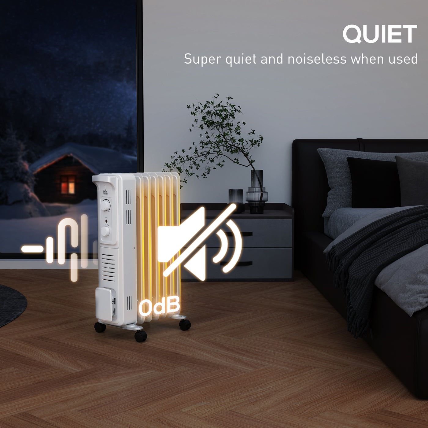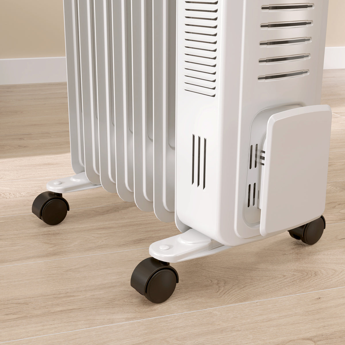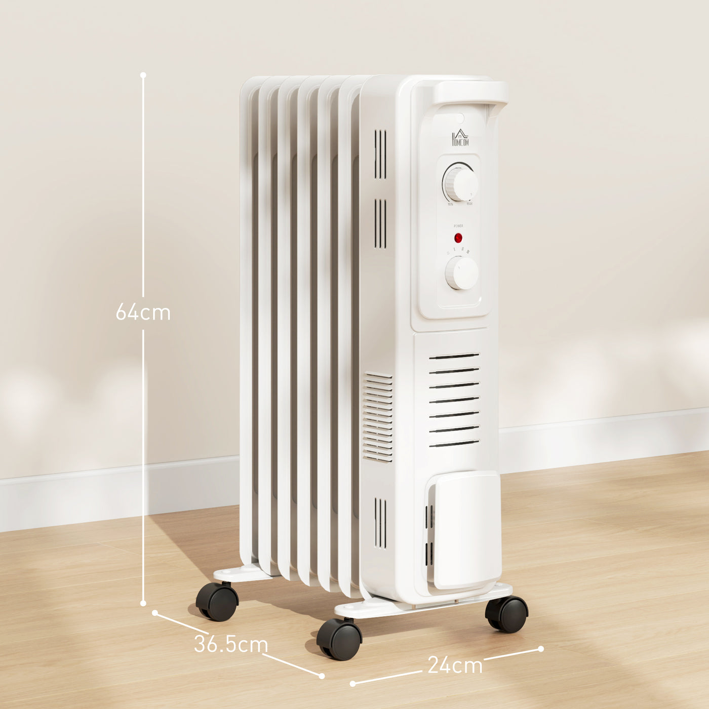 HOMCOM 1500W Quiet Oil Filled Radiator, 7 Fin Energy Efficient Portable Electric Heater with 3 Heat Settings, Adjustable Thermostat, Safety Tip Over, Overheat Protection, for Home, White - White