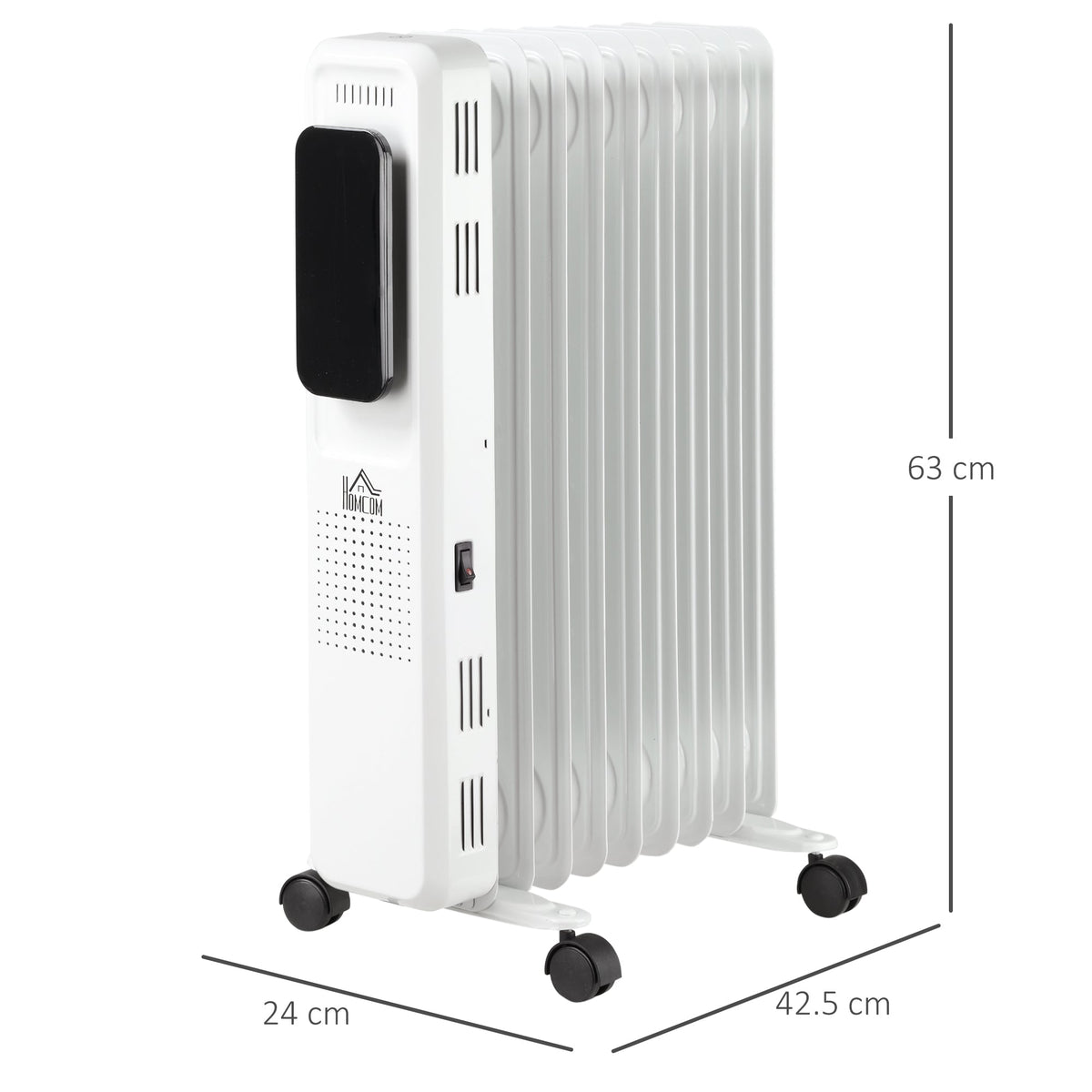 HOMCOM 2000W Oil Filled Radiator, 9 Fin Portable Electric Heater with LED Display, 24H Timer, 3 Heat Settings, Adjustable Thermostat, Safety Cut off, Remote Control, White - White
