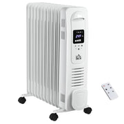 HOMCOM 2500W Digital Display Oil Filled Radiator, 11 Fin Portable Electric Heater with Timer, Adjustable Thermostat, Three Heat Settings, Safety Cut Off, Remote, White - White