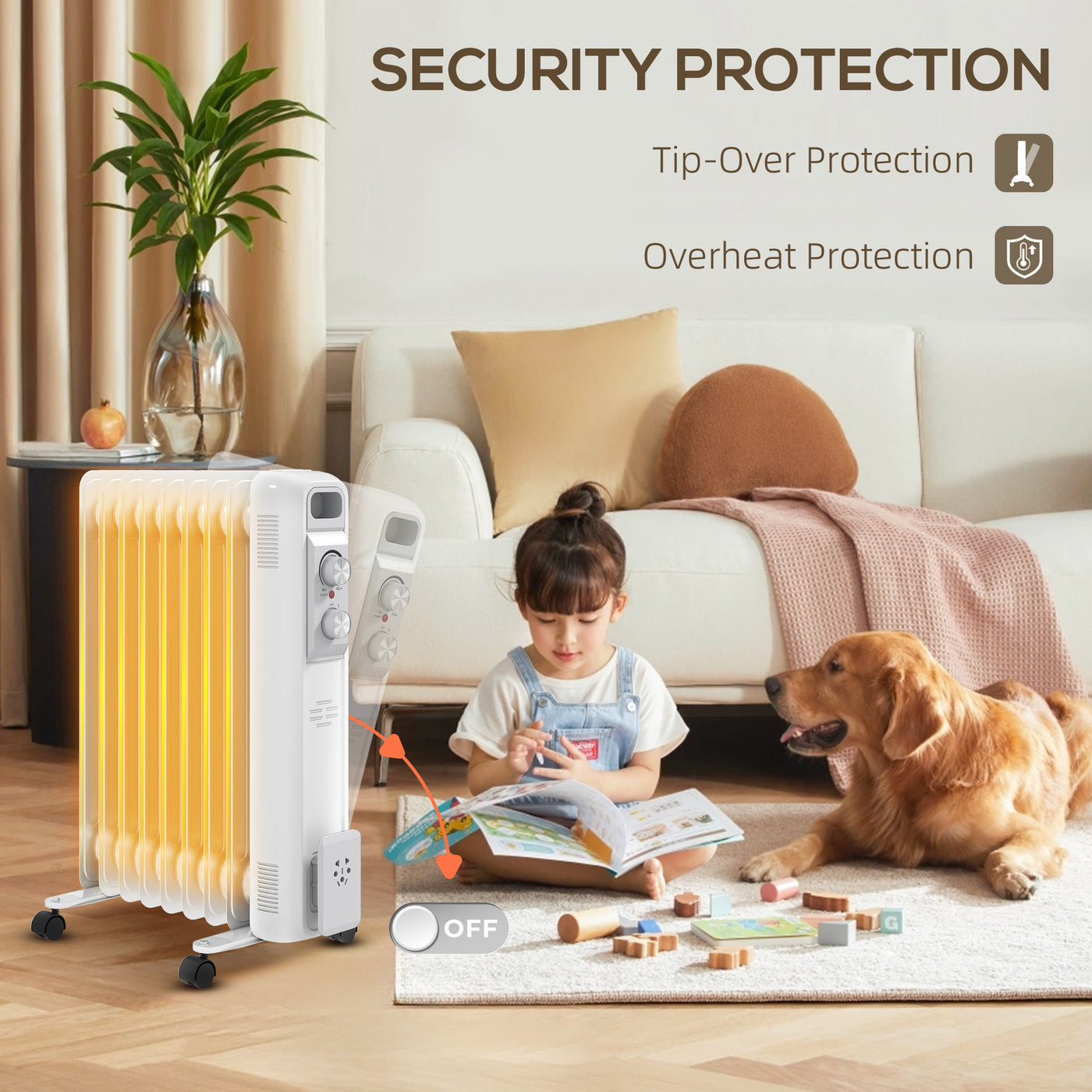 HOMCOM 2kW Nine Fin Oil-Filled Radiator - White