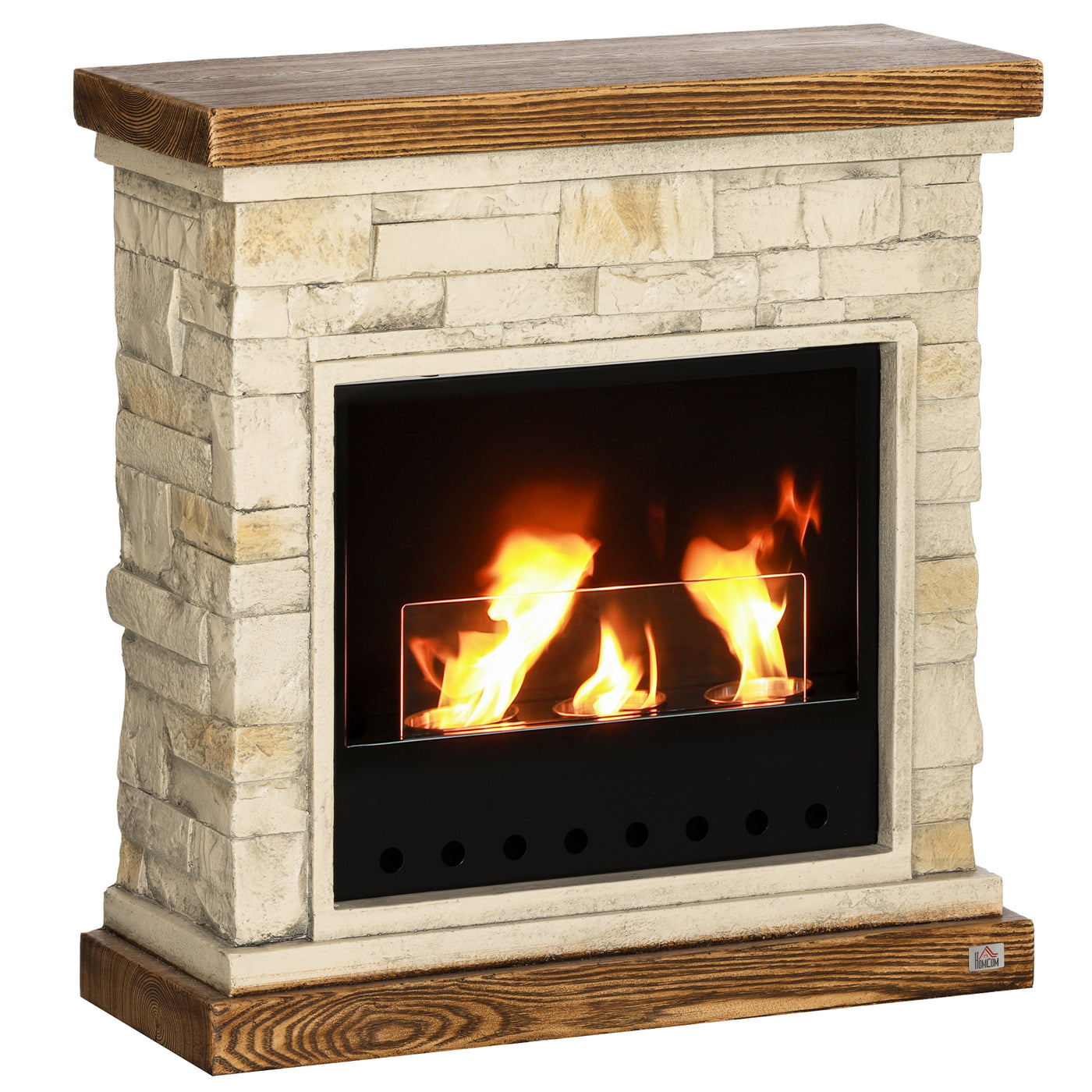 HOMCOM Bioethanol Fire Heater, with Brickwork-Effect Mantelpiece - Brown - Brown