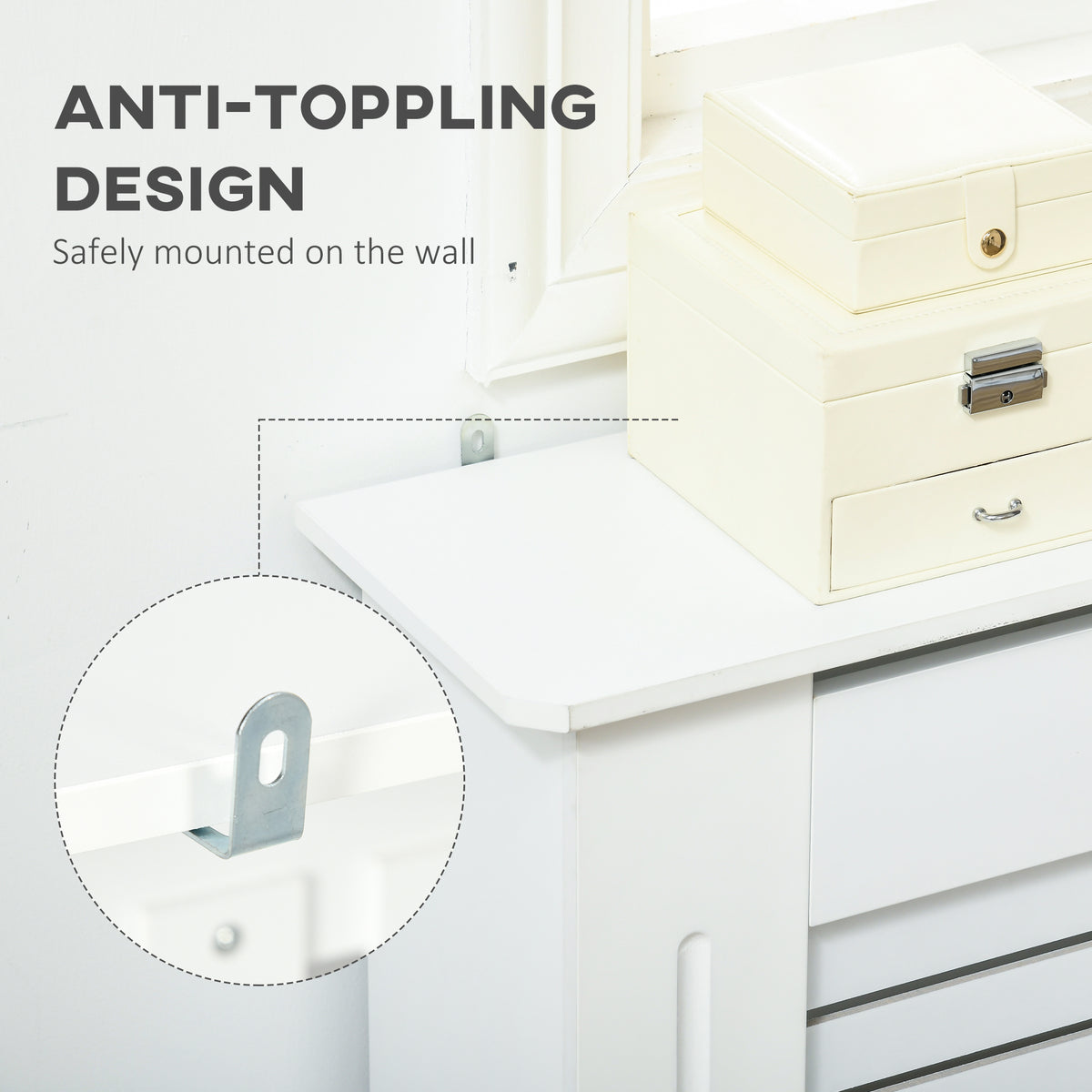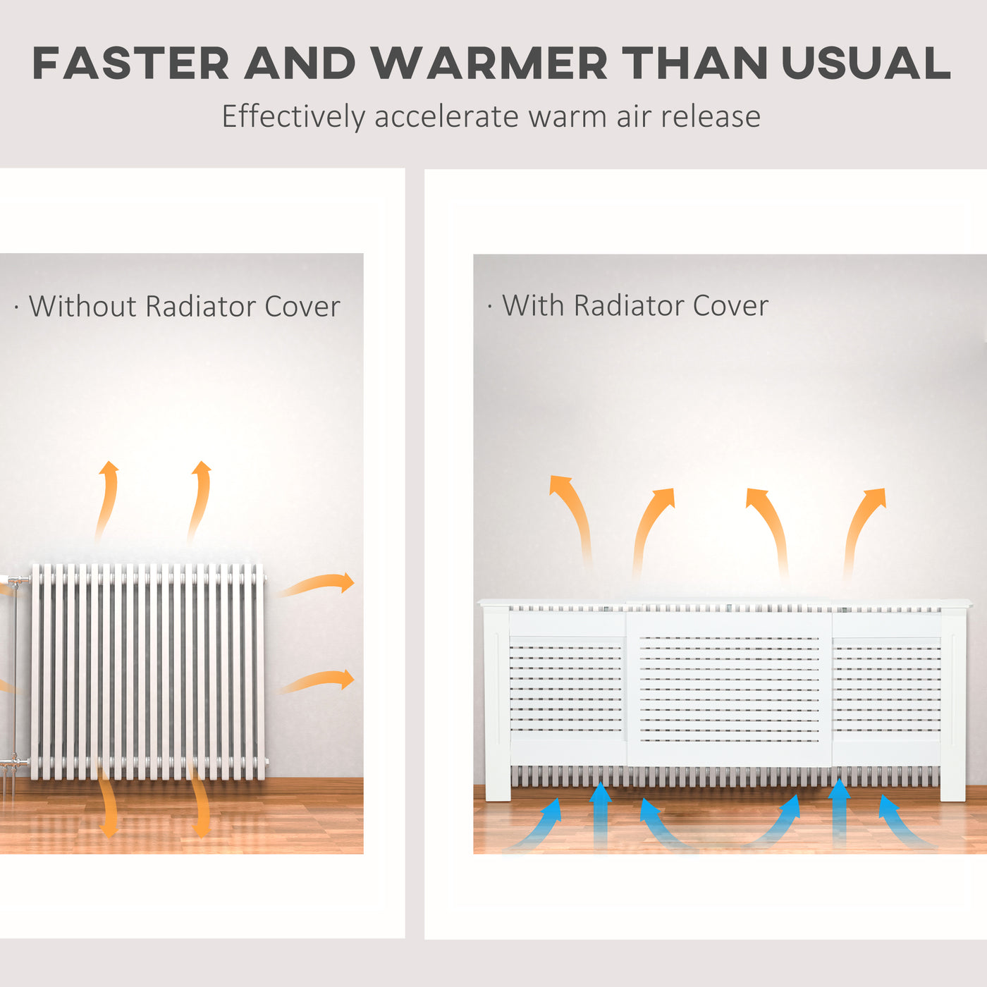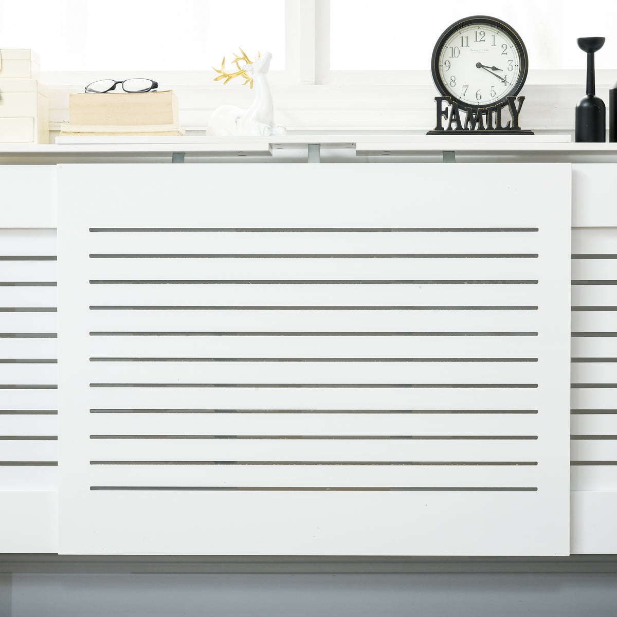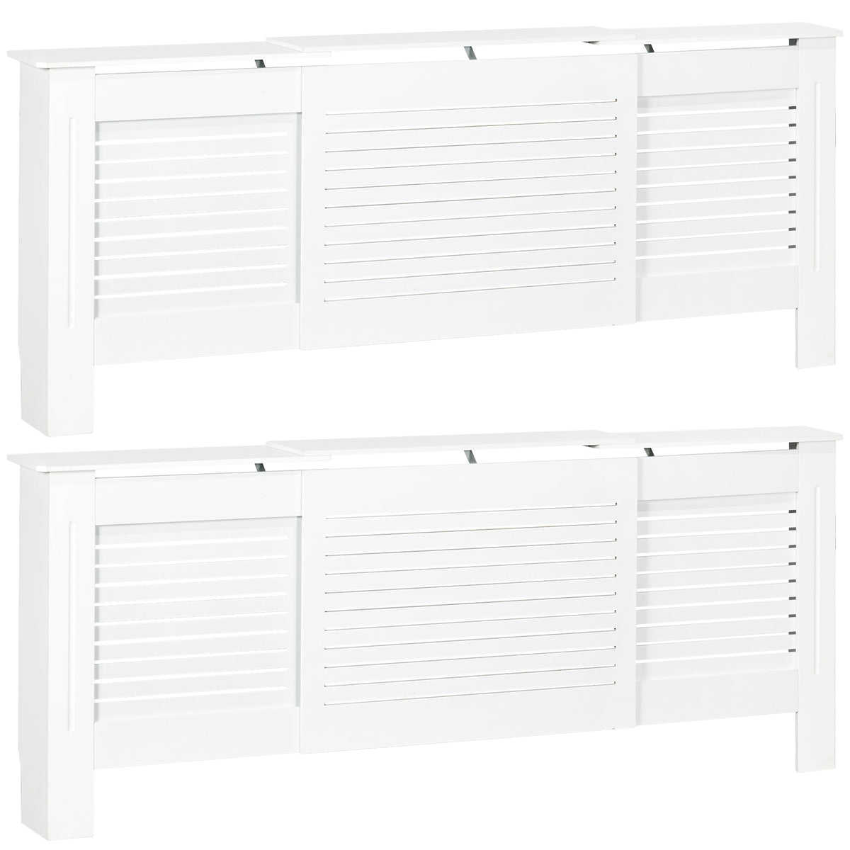 HOMCOM Set of 2 MDF Extendable Radiator Cover with Cabinet Shelving, Home Office Slatted Design, White 139-208.5L x 20.5W x 82.5H cm - White